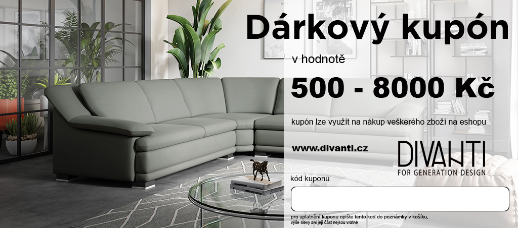 Kupón vám pošleme barevně vytištěný a lze za něj nakoupit cokoliv nejen z www.divanti.cz. Uplatnění kupónu je jednoduché, originální kód, který na něm je, obdarovaný jednoduše uvede v poznámce u své objednávky a my z nákupu kupón automaticky odečteme.