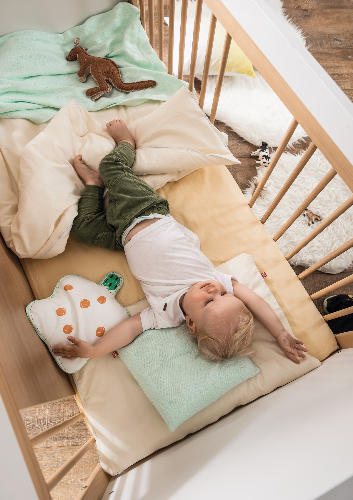 Postýlka lze rozložit na lůžko, které můžete využít, až vaše dítě bude starší. Díky 3 odnímatelným bočním příčkám si také může kdykoliv vlézt do postýlky nebo z ní vylézt.