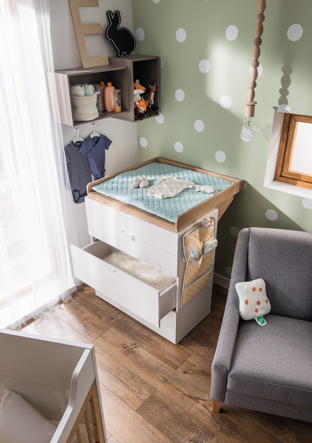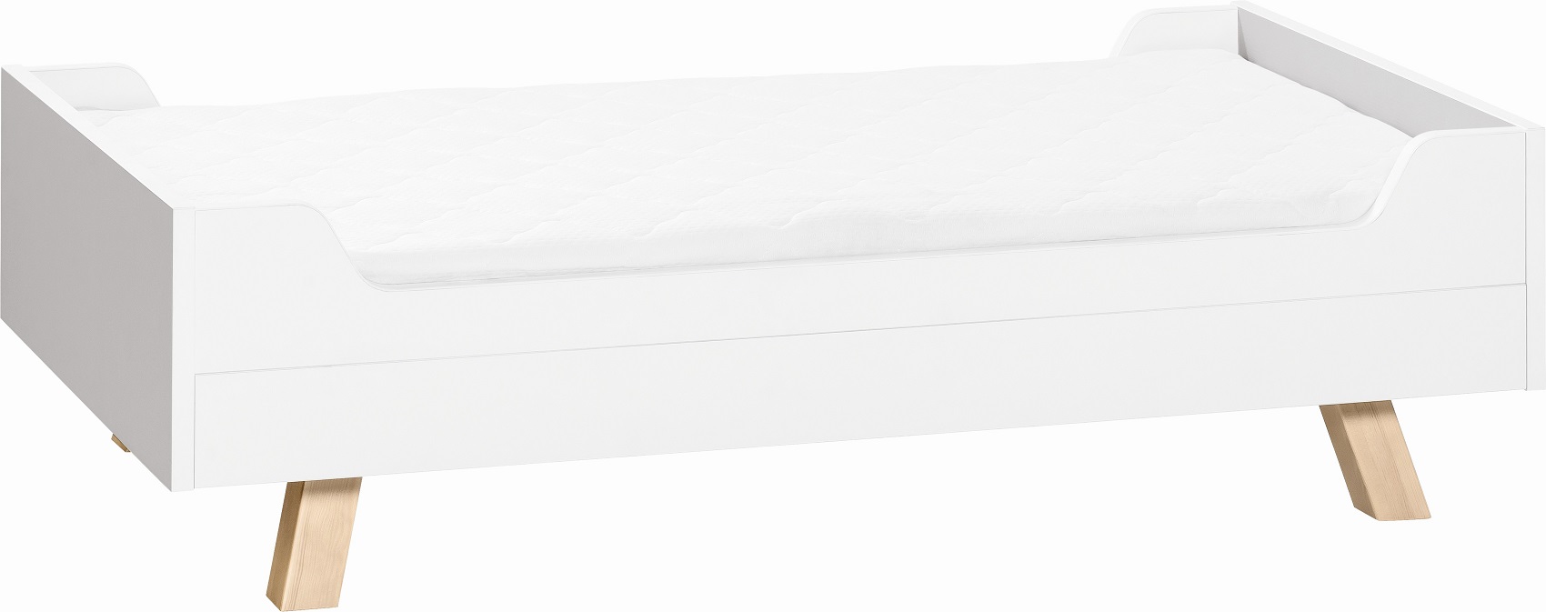 Dětská postýlka 4You 140x70 cm vás zaujme svým moderní designem v bílém odstínu v kombinaci s přírodním dubem. Je vyrobena z kvalitního lamina odolného vůči poškrábání a nečistotám. Úzké vysoké nožky, které provzdušní váš prostor, jsou z masivního dubového dřeva.