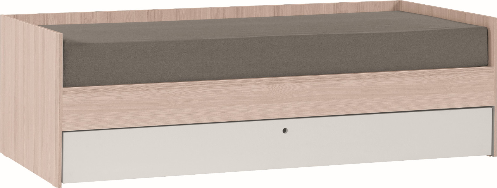 Kanape s přídavným lůžkem Spot vás zaujme svým prostým designem v odstínu akátového dřeva v kombinaci s bílým lakem. Je vyrobeno z kvalitního lamina a masivního borovicového dřeva. Lamino je odolné vůči vlhkosti, poškrábání a nečistotám.