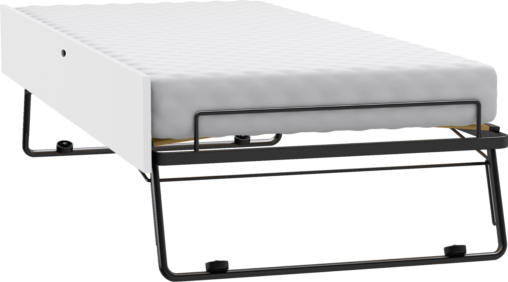 Součástí postele je lamelový výklopný rošt v kovovém rámu, pod kterým se nachází úložná prostor k uložení ložního prádla nebo přikrývky. Matrace o velikosti 90x200 cm není součástí, ale můžete si ji doobjednat v kategorii Matrace a rošty.