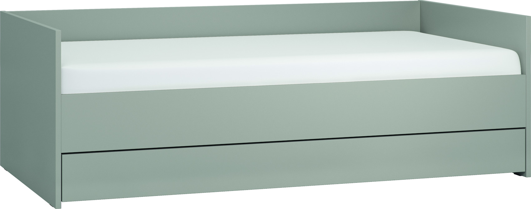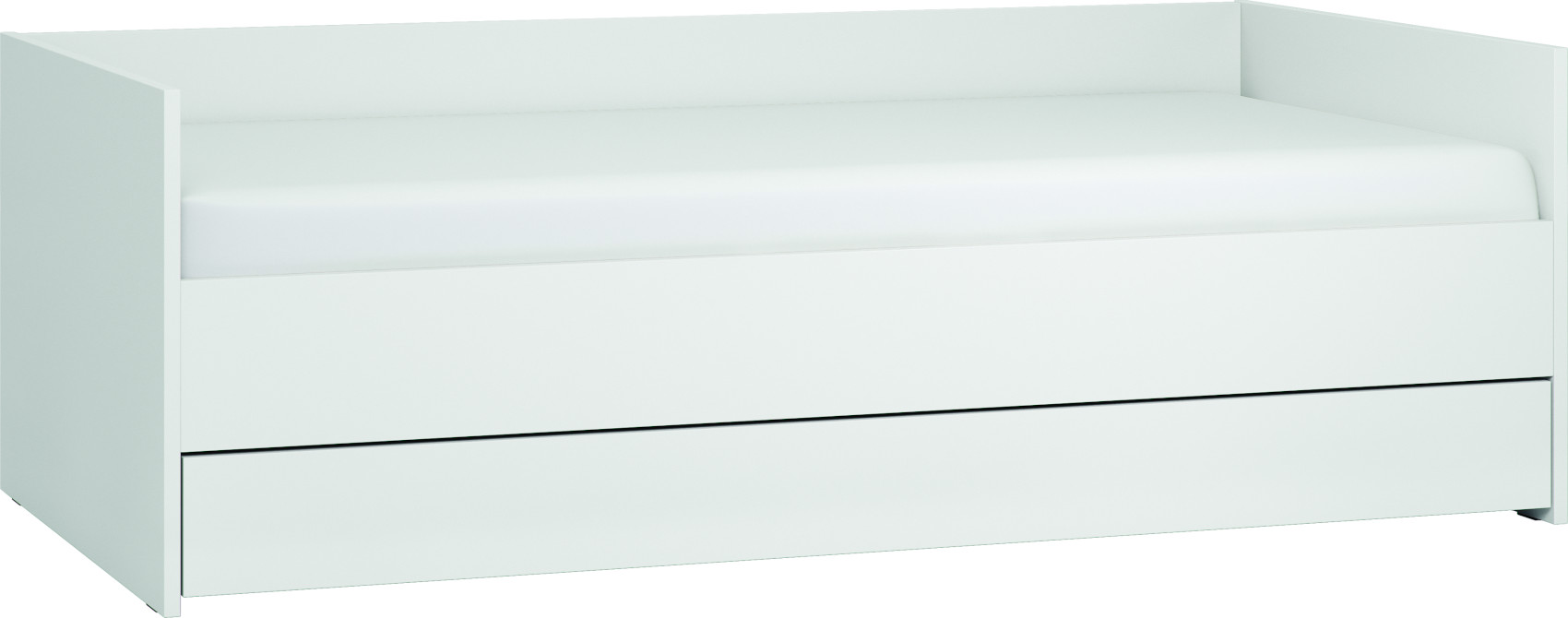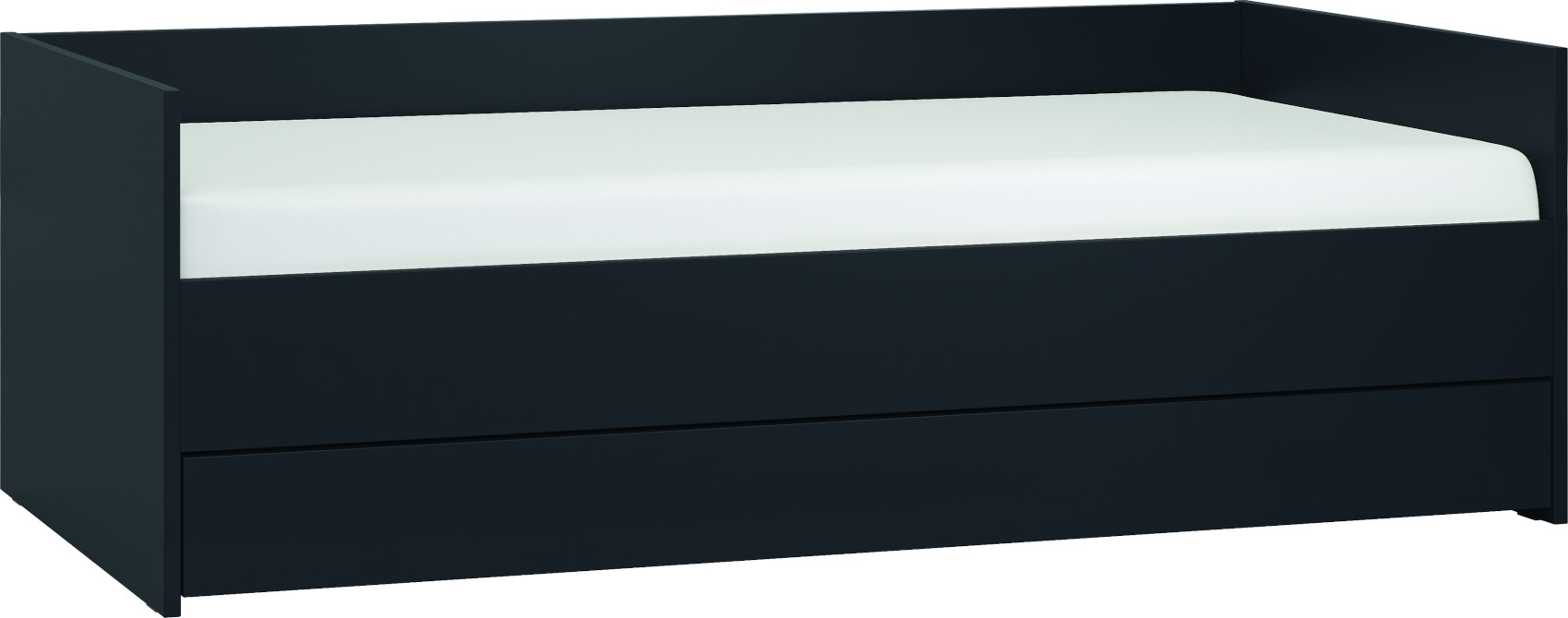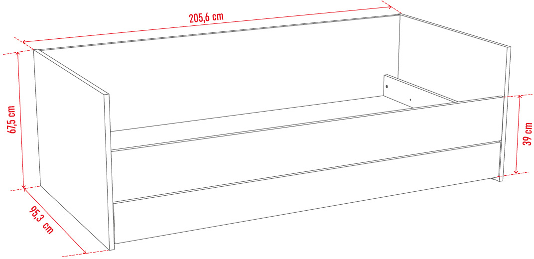Součástí postele je výklopný lamelový rošt, pod kterým je prostor k uložení ložního prádla, přikrývek a polštářů. Matrace není součástí lůžka, ale můžete si ji doobjednat v kategorii Matrace a rošty. Ve spodní části je plné čelo. Do volného prostoru za čelem lze dokoupit úložnou zásuvku nebo přídavné lůžko k občasnému přespání, které je vybaveno lamelovým roštem bez matrace.
