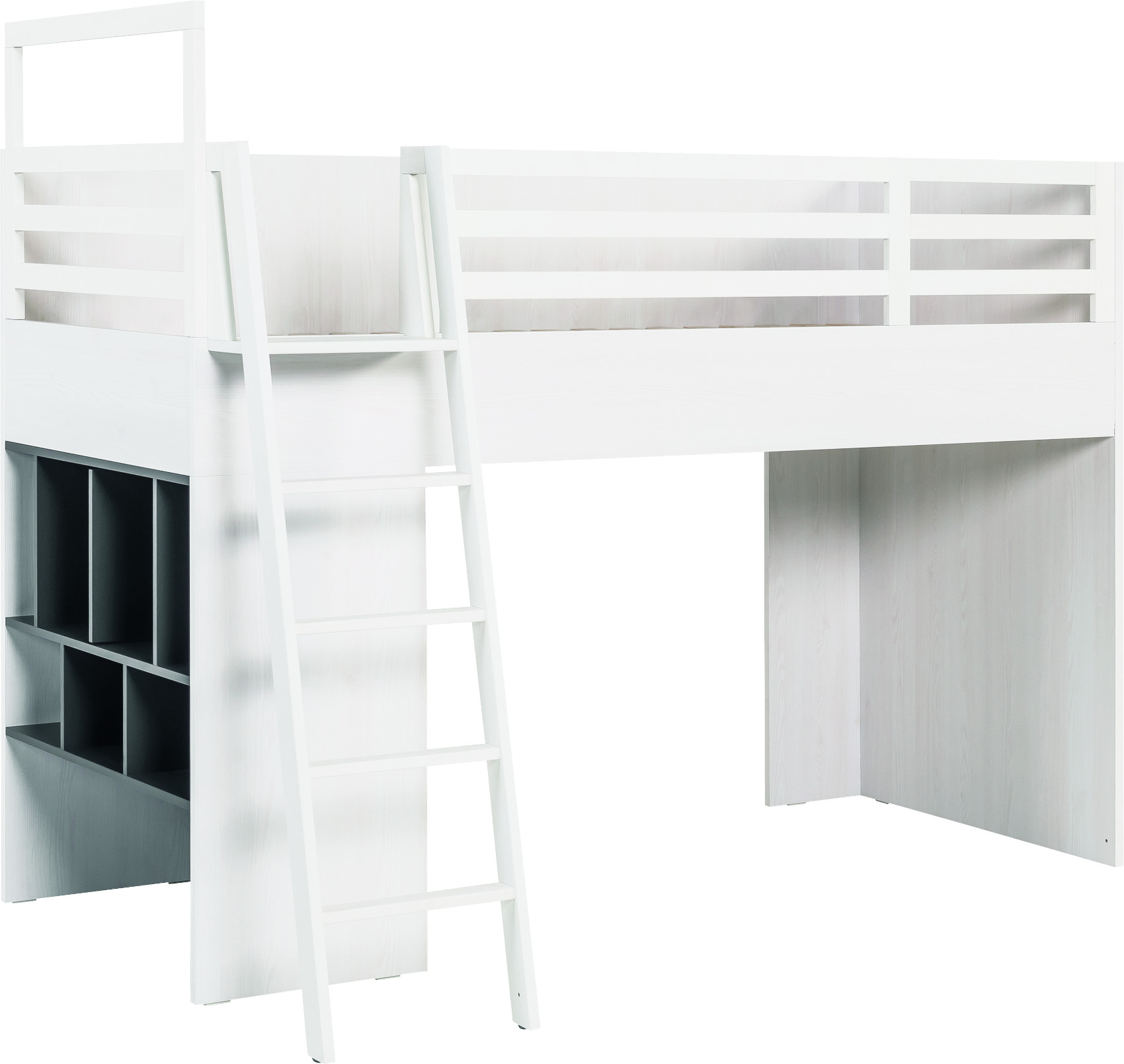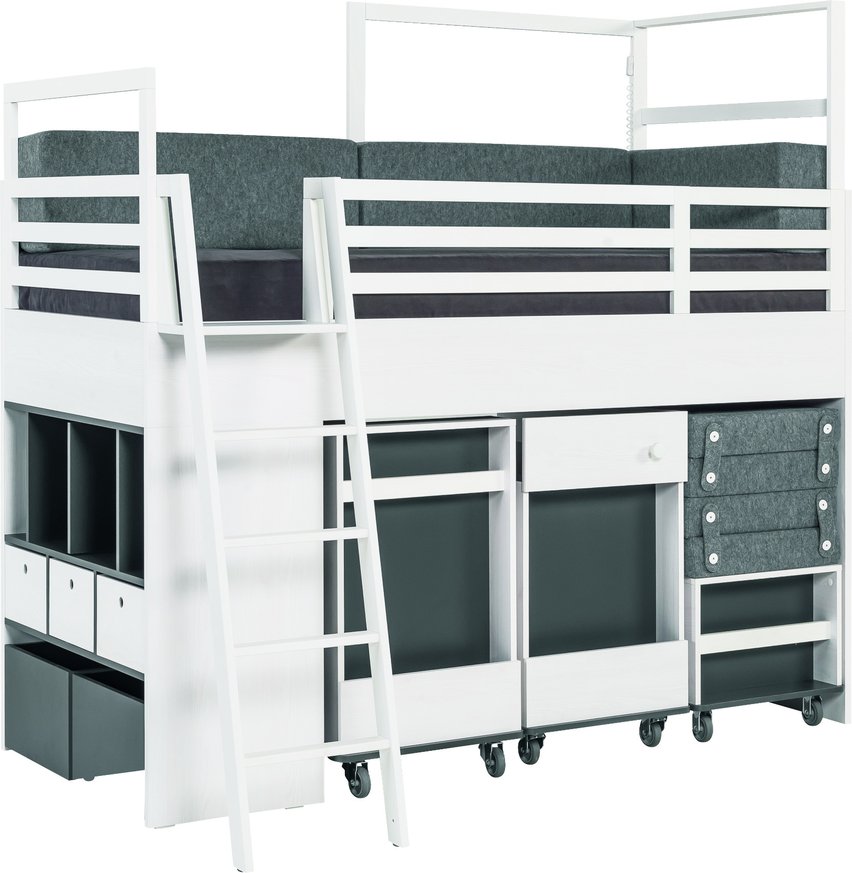 Úložný prostor pod postelí můžete využít jako relaxační koutek pro vaše dítě nebo k uložení 3 kontejnerů. V naší nabídce naleznete až 4 kontejnery - skříňka s úložným prostorem, stolek k posteli, skříňka s policemi a skříňka s tyčí. K posteli lze také přidělat regál s policemi nebo skříň Cargo. Součástí postele je zabudovaný malý policový systém, k vystavení vašich oblíbených knih, dekorací nebo rámečků s fotografiemi. Do úložného prostoru pod regálem můžete zasunout 2 zásuvky na kolečkách.
