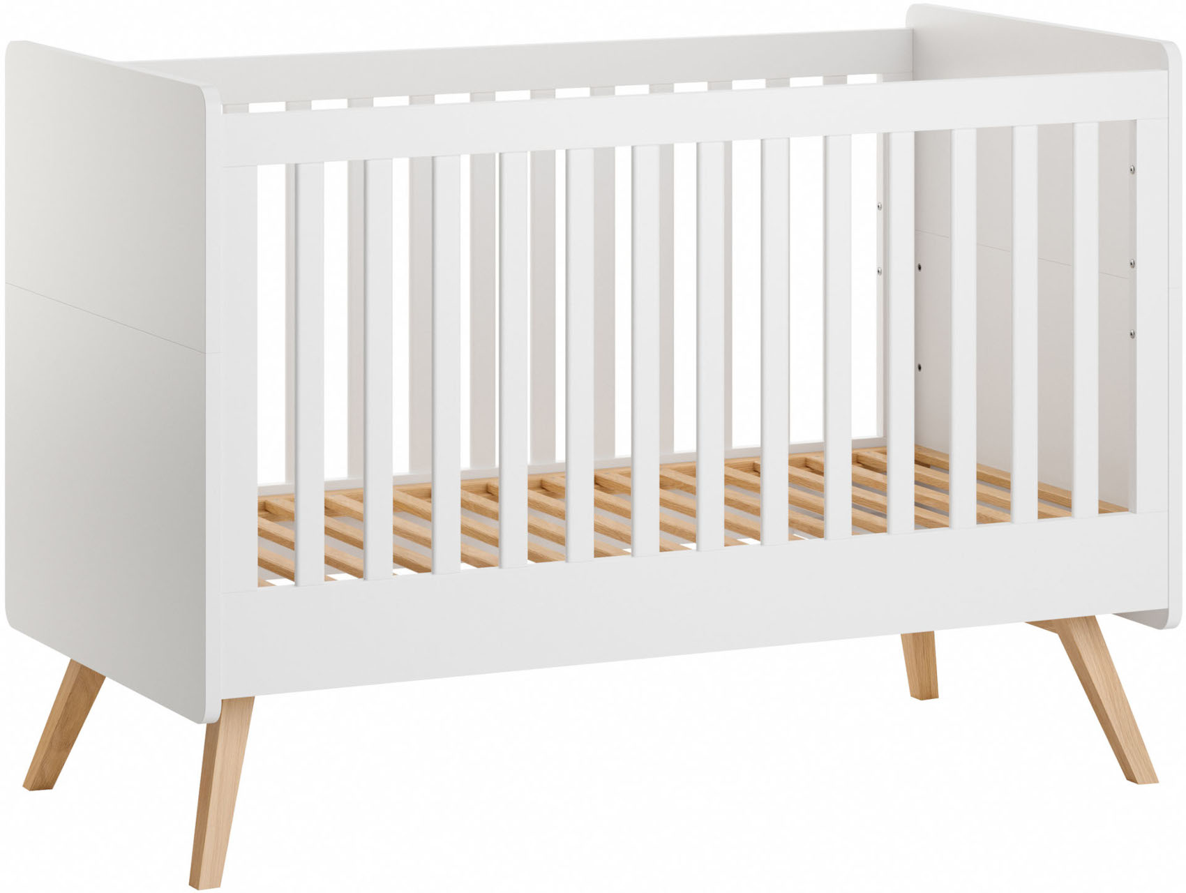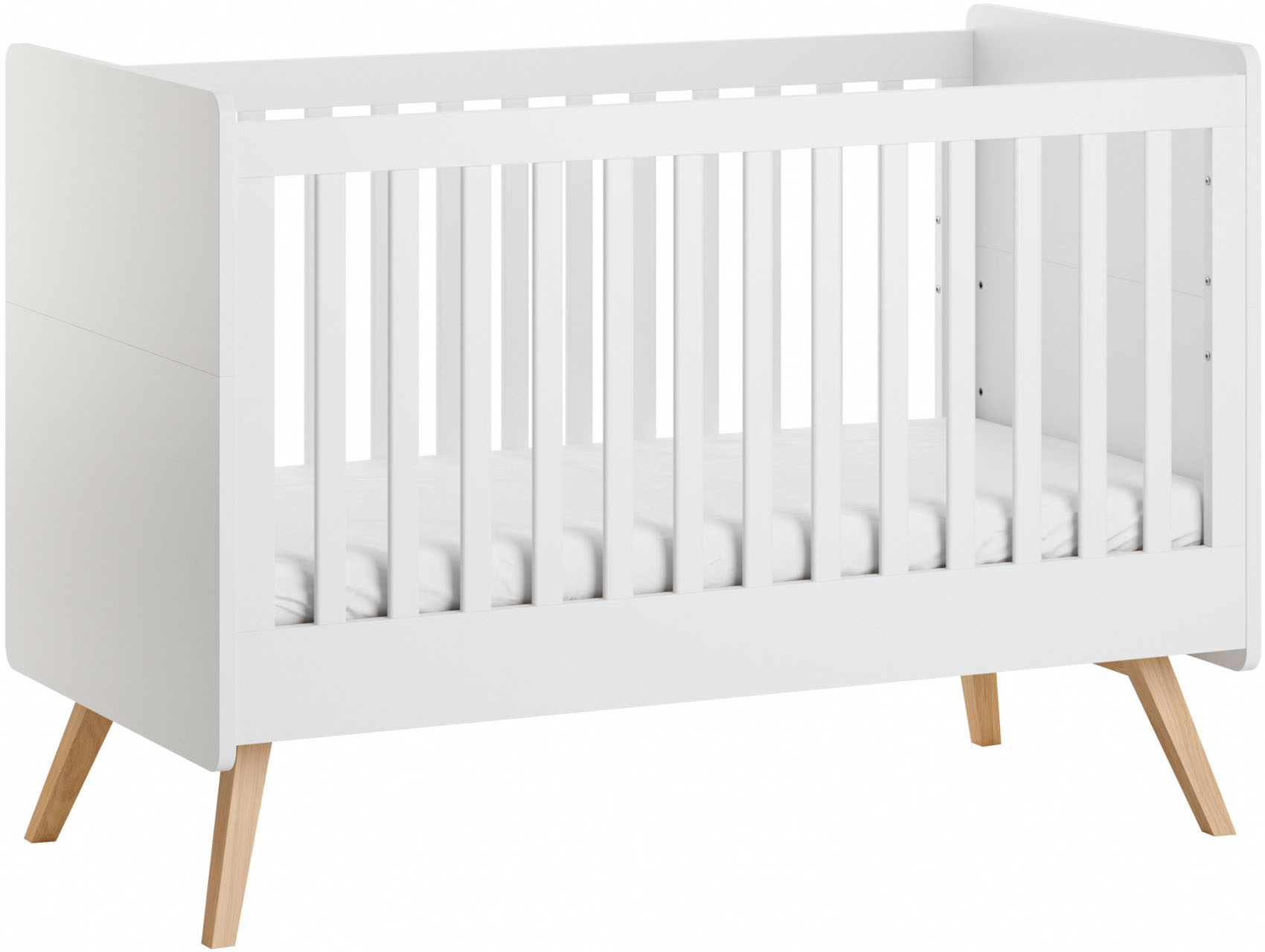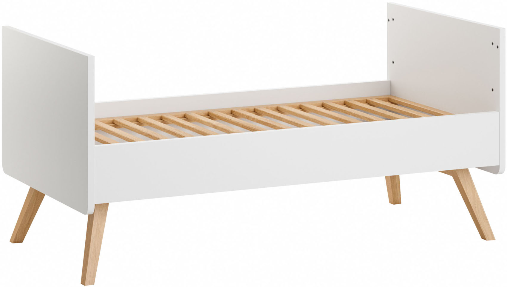 Jednoduchá dětská bílá postýlka Vintage 70x140 cm vás zaujme svým jedinečným designem v retro stylu. Je vyrobena z kvalitního lamina odolného vůči poškrábání, nečistotám a vlhkosti. Úzké dlouhé nožky, které provzdušní váš prostoru a dodají nábytku nádech elegance, jsou z masivního dubového dřeva.