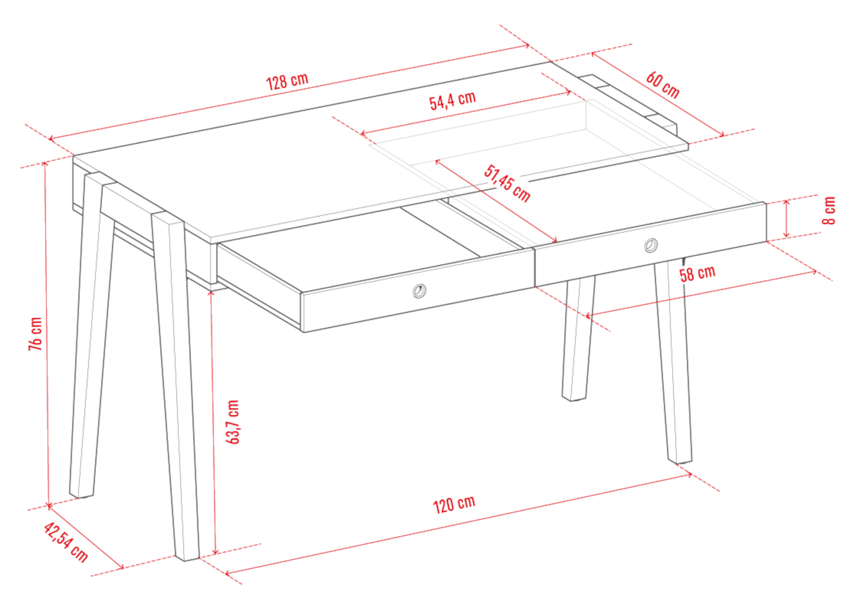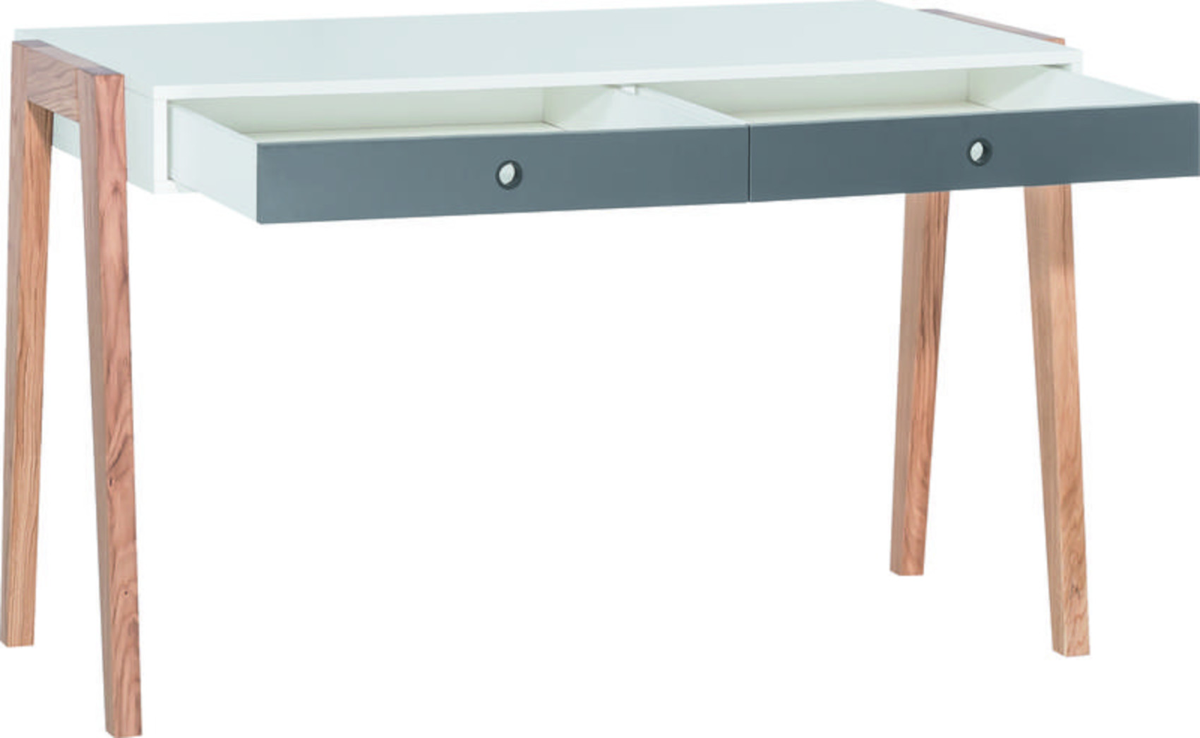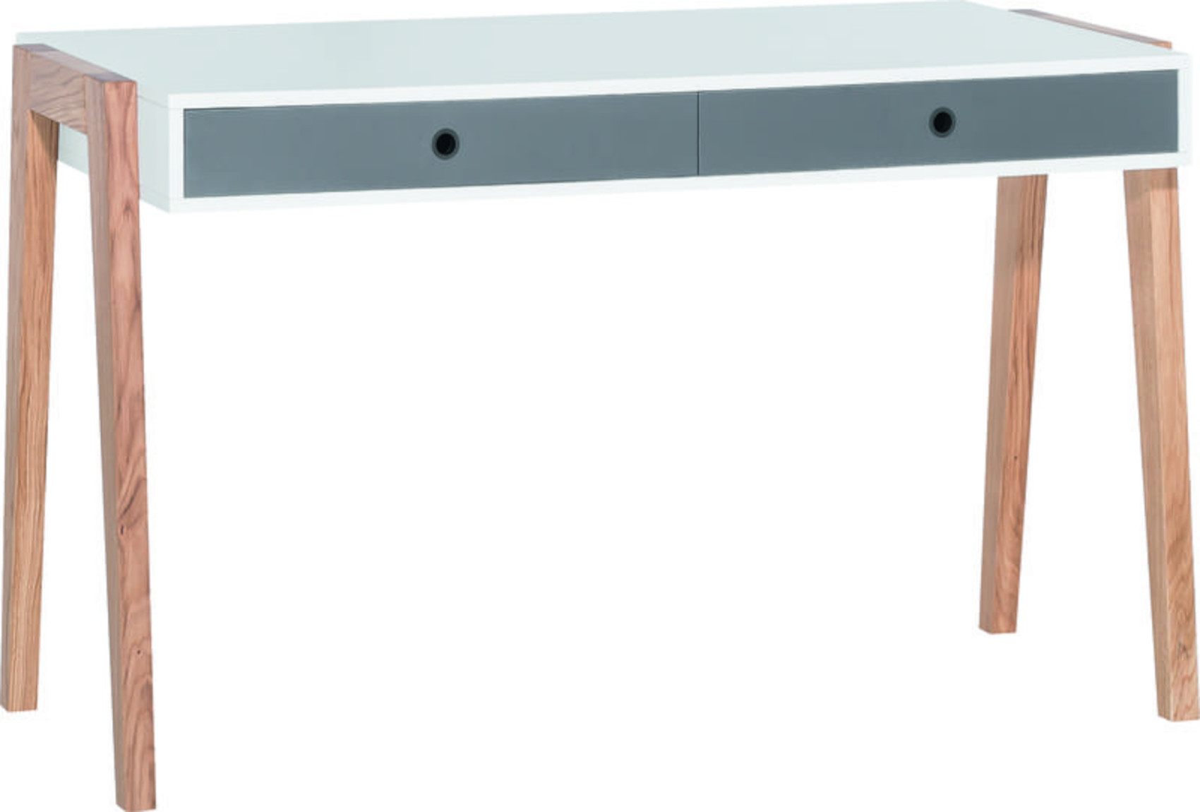 Moderní psací stůl Concept vás zaujme svým jedinečným designem. Horní deska je vyrobena z kvalitního lamina o síle 16 mm, které je odolné vůči nečistotám a poškrábání. Nohy jsou z lakovaného dubového dřeva. Rukojeti jsou ve formě kulatého otvoru se silikonovým povrchem.