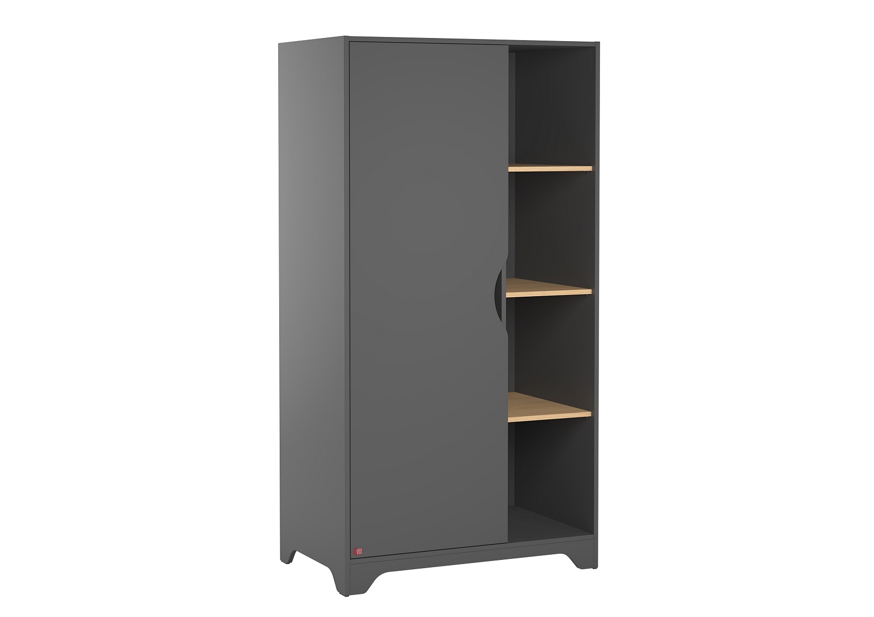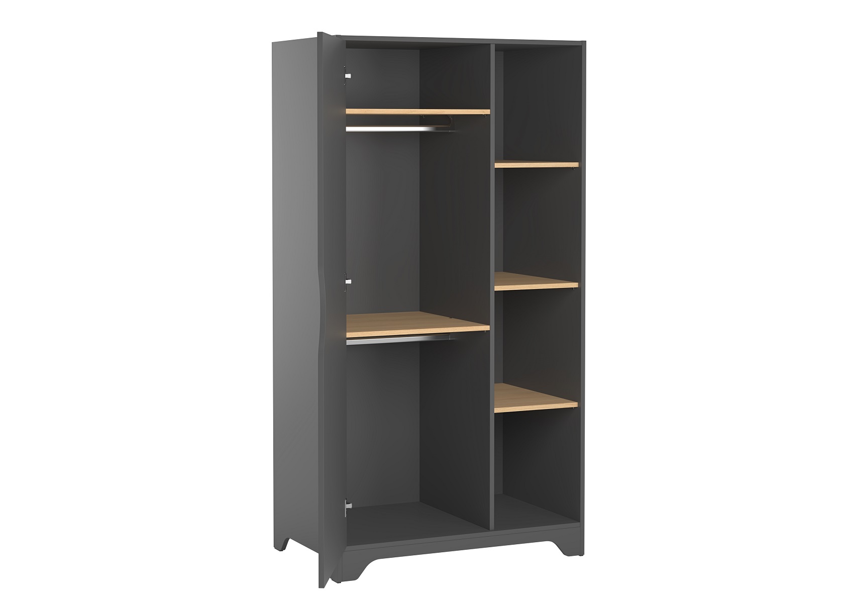Dětská šatní skříň Leaf vás zaujme svým moderním designem s prvky elegance. Je vyrobena z kvalitního lamina odolného vůči nečistotám, poškození a vlhkosti. Nožky, které navazují na korpus nábytku, provzdušní váš interiér. Dvířka mají zabudovaný systém tichého dovírání. Nabízíme vám 2 barevné varianty - bílá/dub nebo grafit/dub, který je za příplatek.