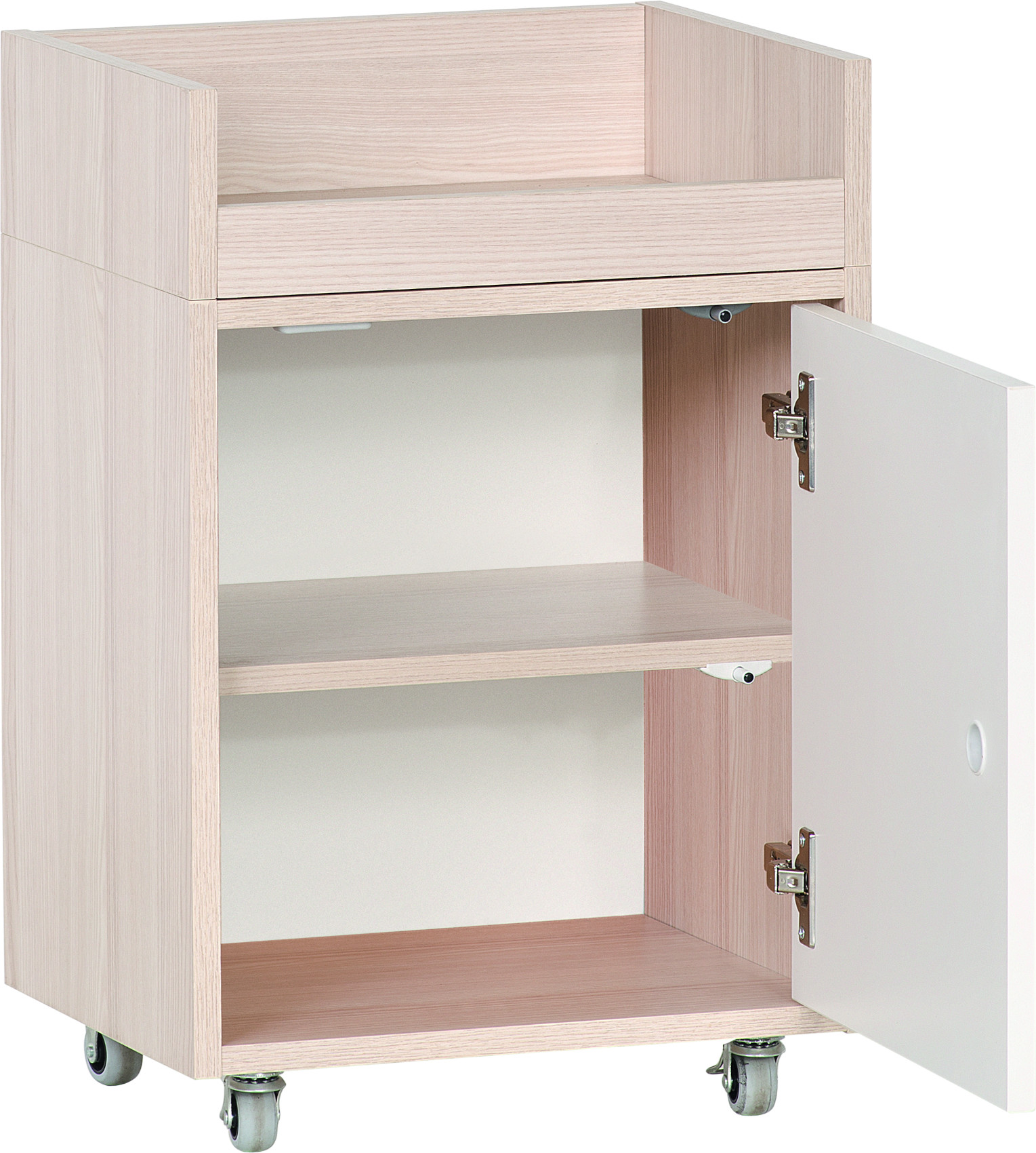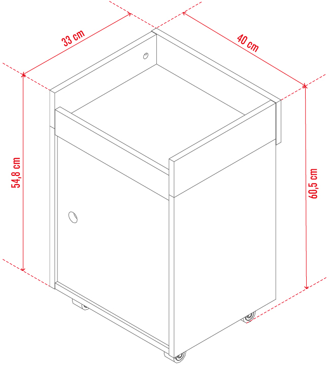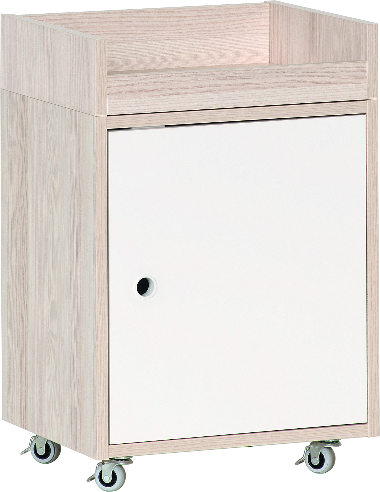 Kontejner k psacímu stolu Spot vás zaujme svým prostým designem v odstínu akátového dřeva v kombinaci s bílým lakem. Je vyroben z kvalitního lamina o síle 16 mm odolného vůči nečistotám a poškrábání. Díky plastovým kolečkám s brzdami můžete se stolkem libovolně pohybovat po místnosti.