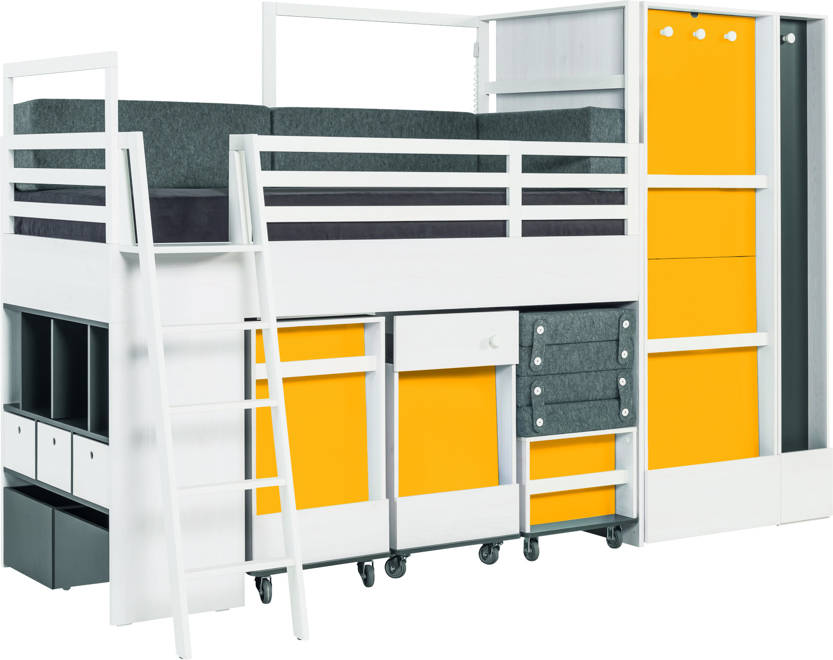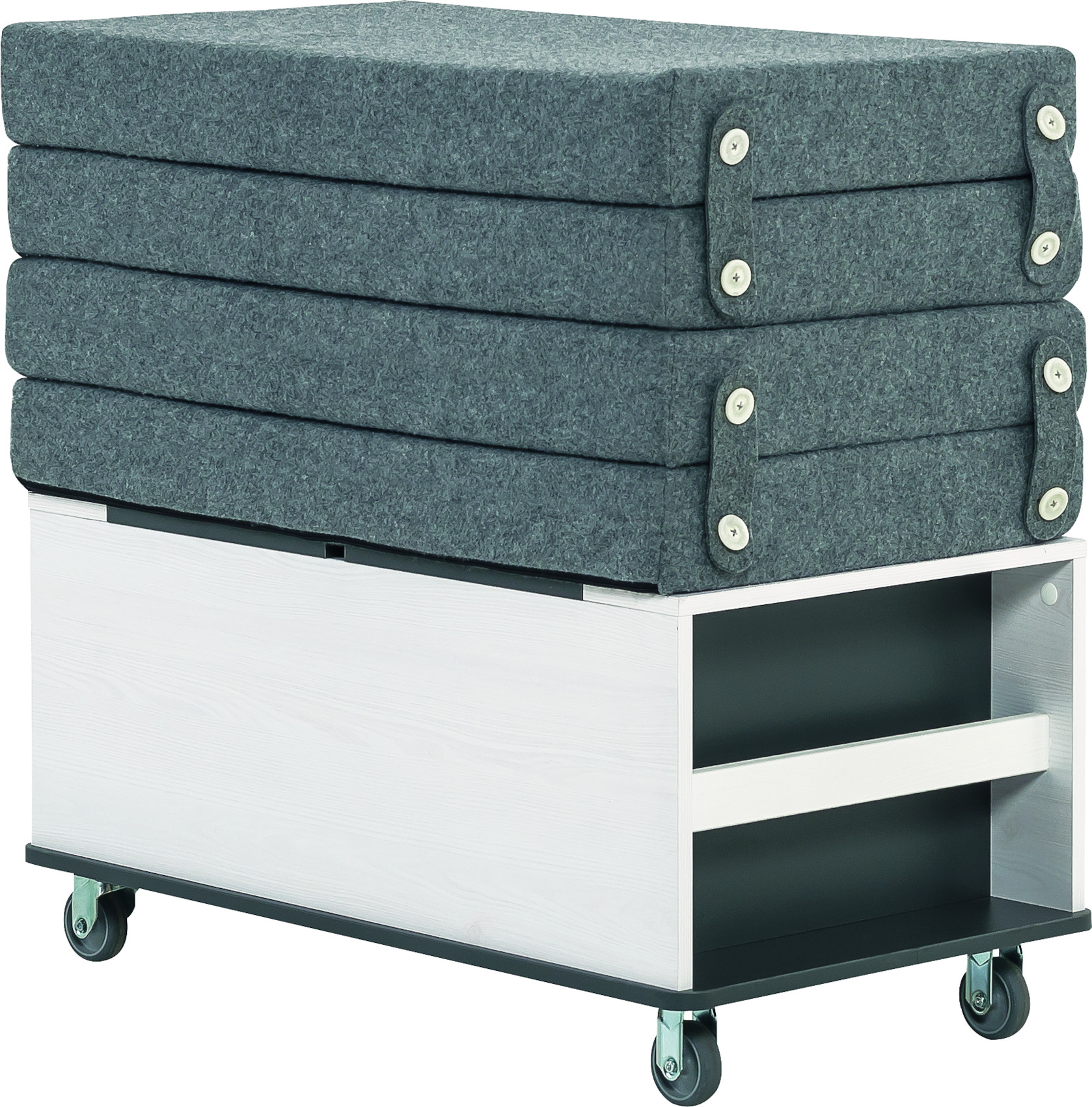 Součástí skříňka je kontejner ke skladování knih, hraček nebo stolních her. Na horní desku lze pokládat rozkládací matrace Nest.
