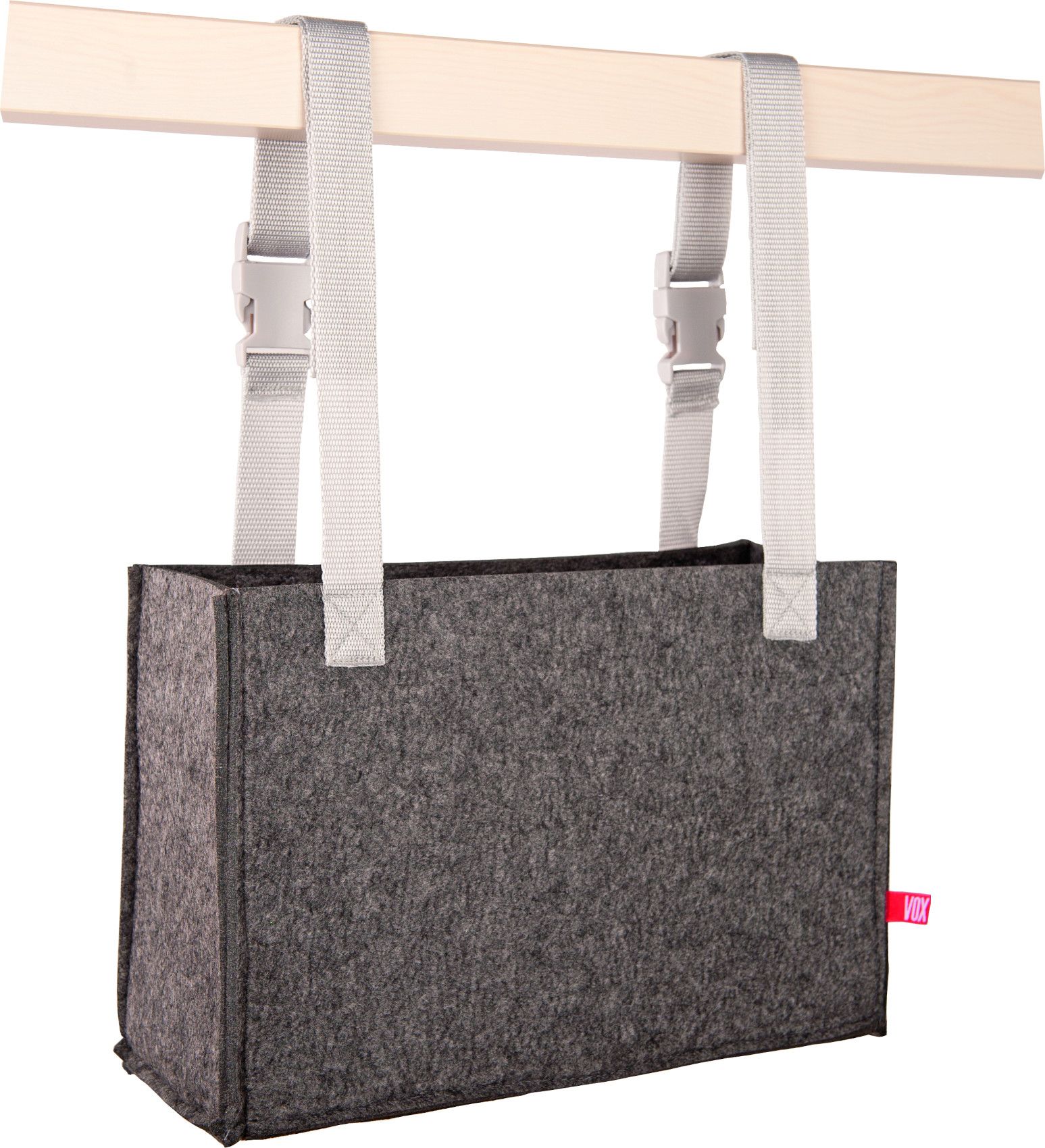 Příborník Spot svislý šedý je vyroben z plsti. Díky nastavitelným popruhům si můžete nastavit libovolnou výšku zavěšení.