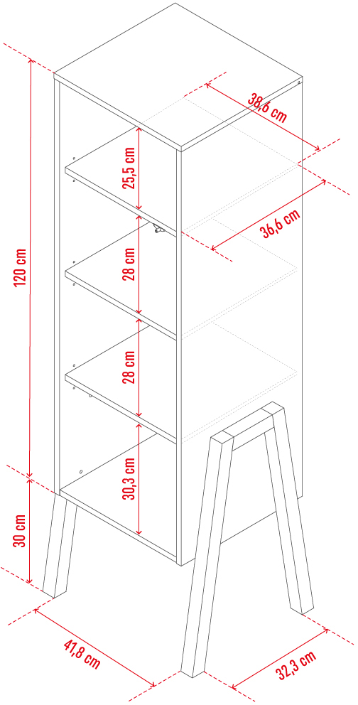 Za dvířky jsou vloženy 3 lakované police s libovolně nastavitelnou výškou. Při montování si můžete zvolit pravé nebo levé otevírání.
