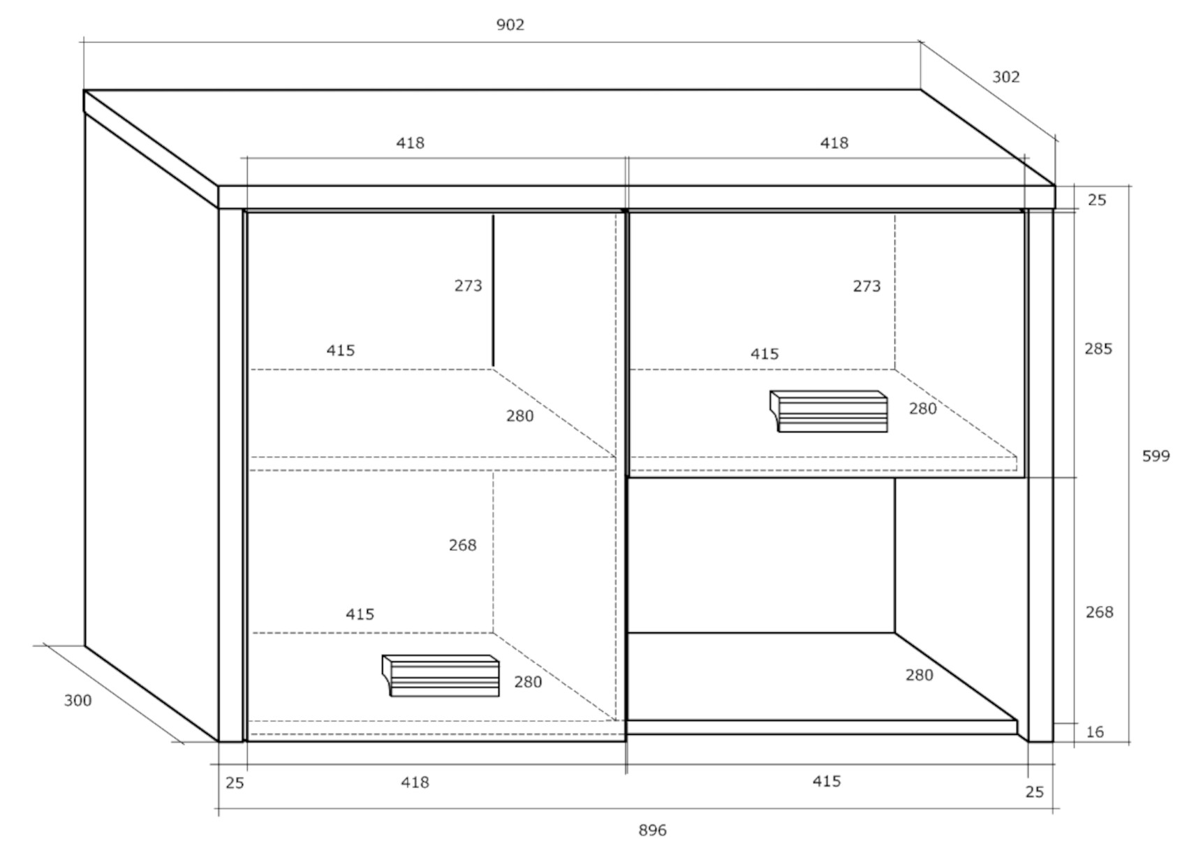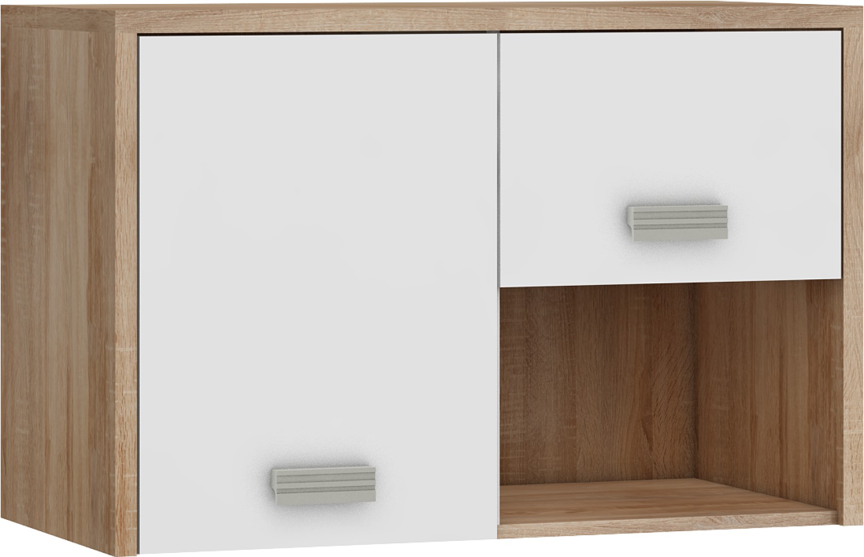 Součástí skříňky jsou 2 plná dvířka, za kterými je vložena 1 lakovaná police. Ve spodní části je otevřená nika k vystavení vašich oblíbených knih, dekorací či rámečků s fotografiemi.