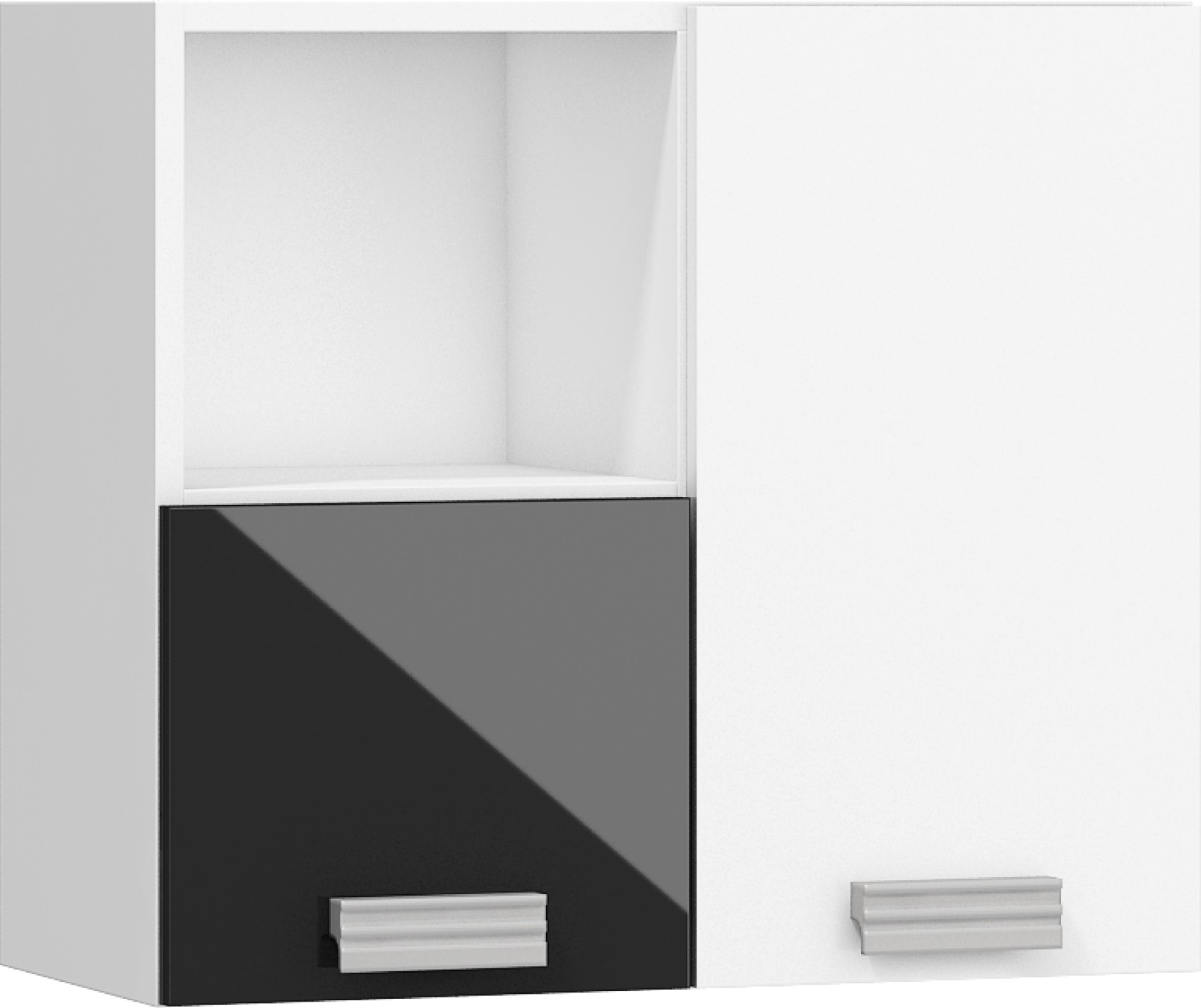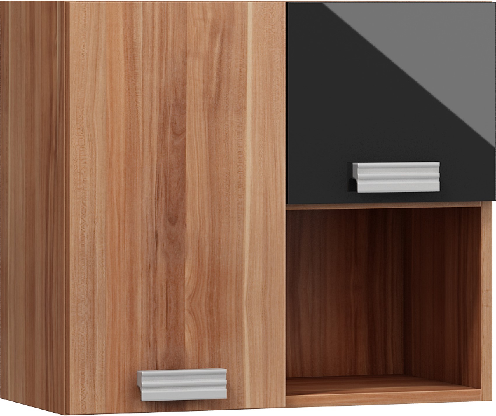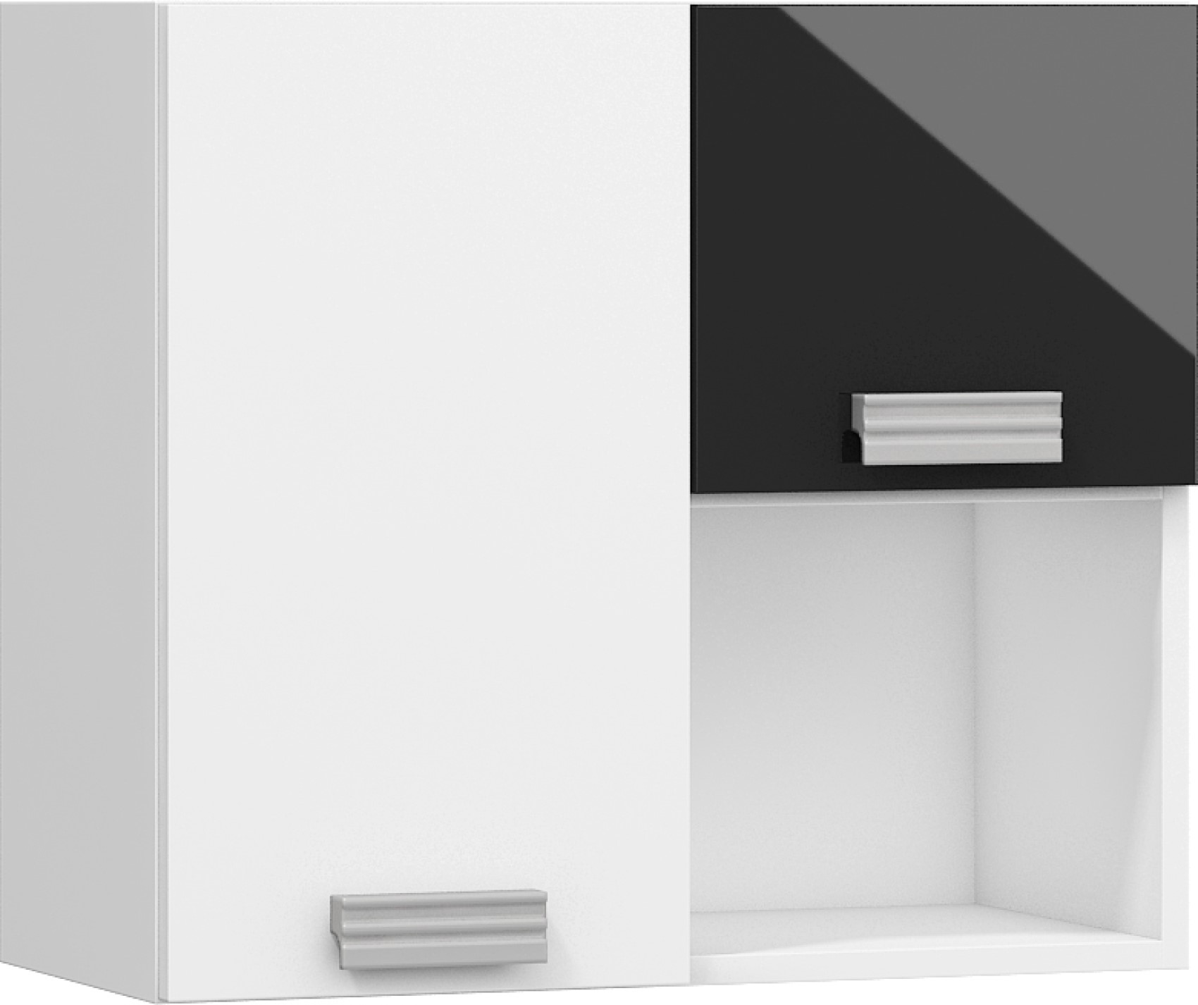 Součástí jsou 3 plná dvířka, za kterými je vložena 1 lakovaná police. V horní nebo spodní části (záleží na vaší volbě montování) je otevřená nika k vystavení vašich oblíbených knih, dekorací či rámečků s fotografiemi.