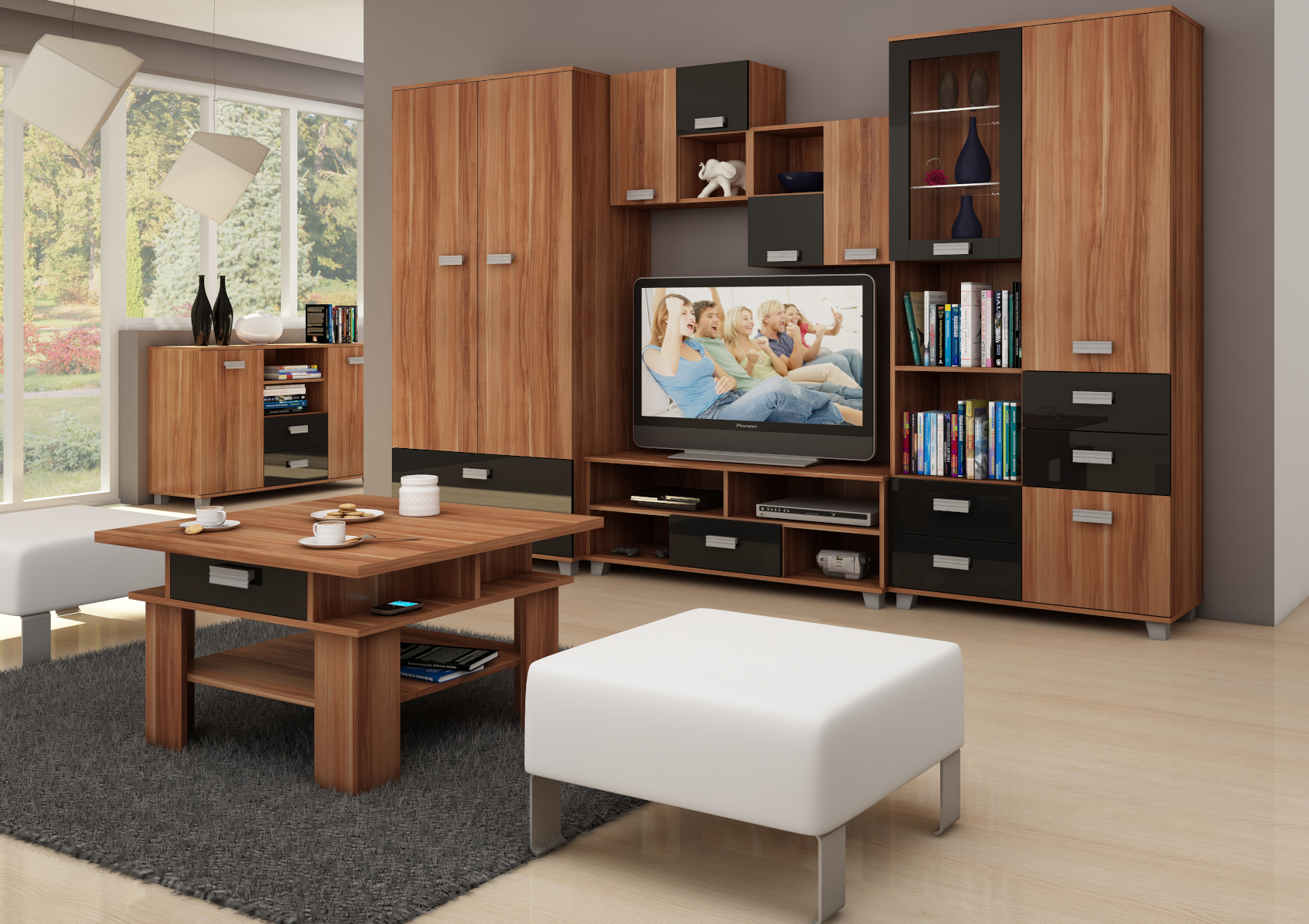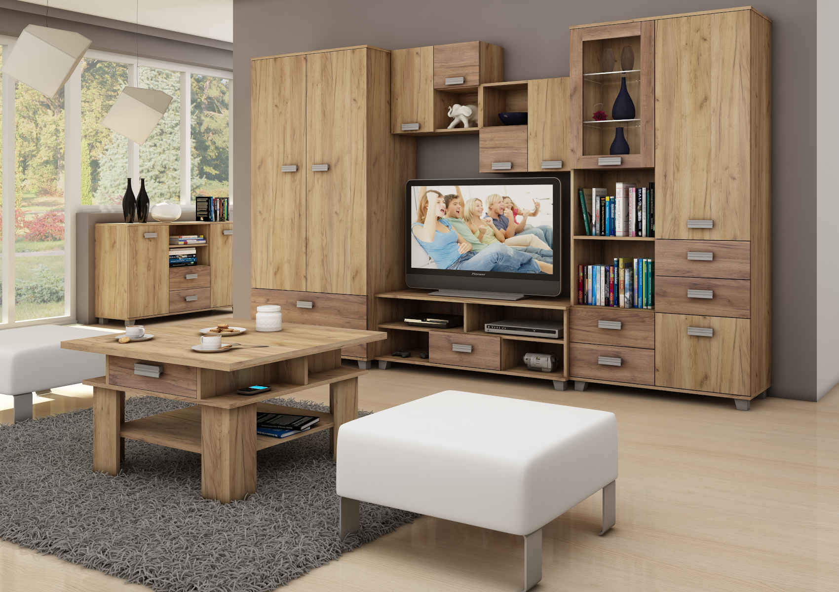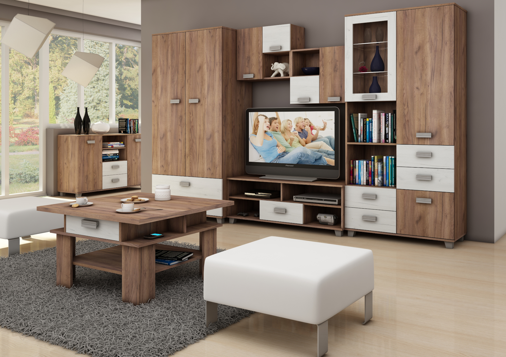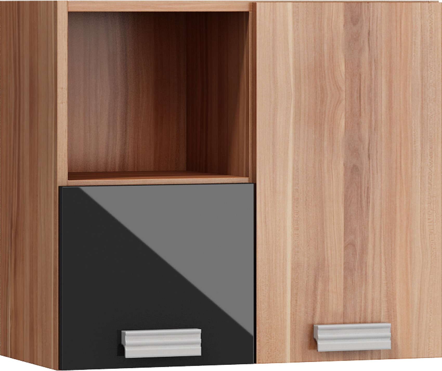 Součástí jsou 3 plná dvířka, za kterými je vložena 1 lakovaná police. V horní nebo spodní části (záleží na vaší volbě montování) je otevřená nika k vystavení vašich oblíbených knih, dekorací či rámečků s fotografiemi.