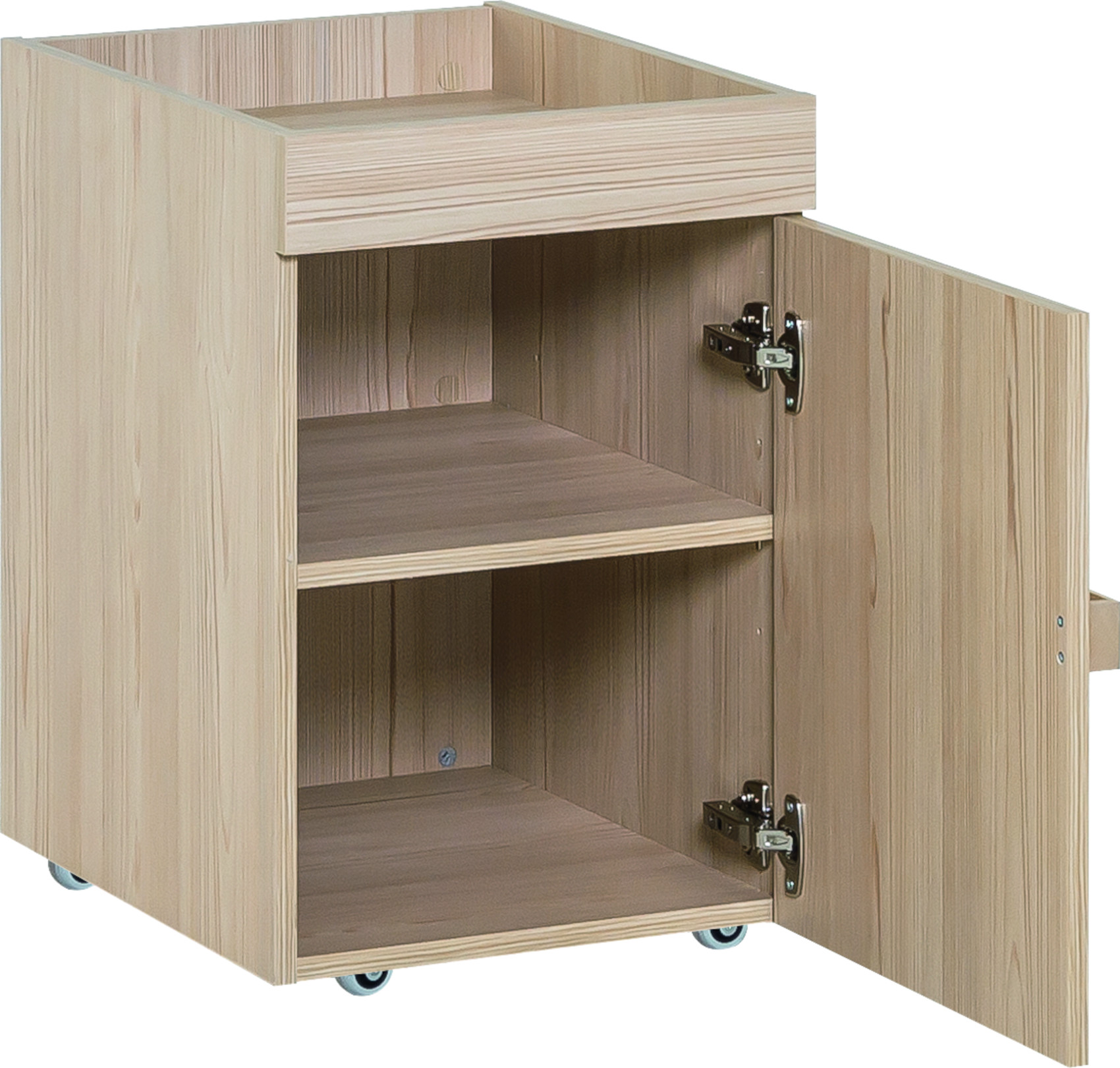 Kontejner Stige vás zaujme svým jednoduchým a přírodním designem. Je vyroben z kvalitního lamina o síle 16 mm, které je odolné vůči poškrábání a nečistotám. Úchyty jsou z masivního bukového dřeva. Místo nožek má kontejner kolečka, díky kterým s ním můžete volně pohybovat po prostoru. Nabízíme vám 3 barevné varianty - borovice, modrá, pistácie.