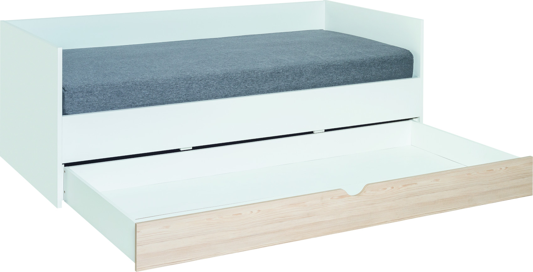 Úložná zásuvka postele a kanape Stige je vyrobena z kvalitního lamina odolného vůči poškrábání, nečistotám a vlhkosti. Zásuvka nemá přední stranu, jelikož ta je již součástí postele nebo kanape.