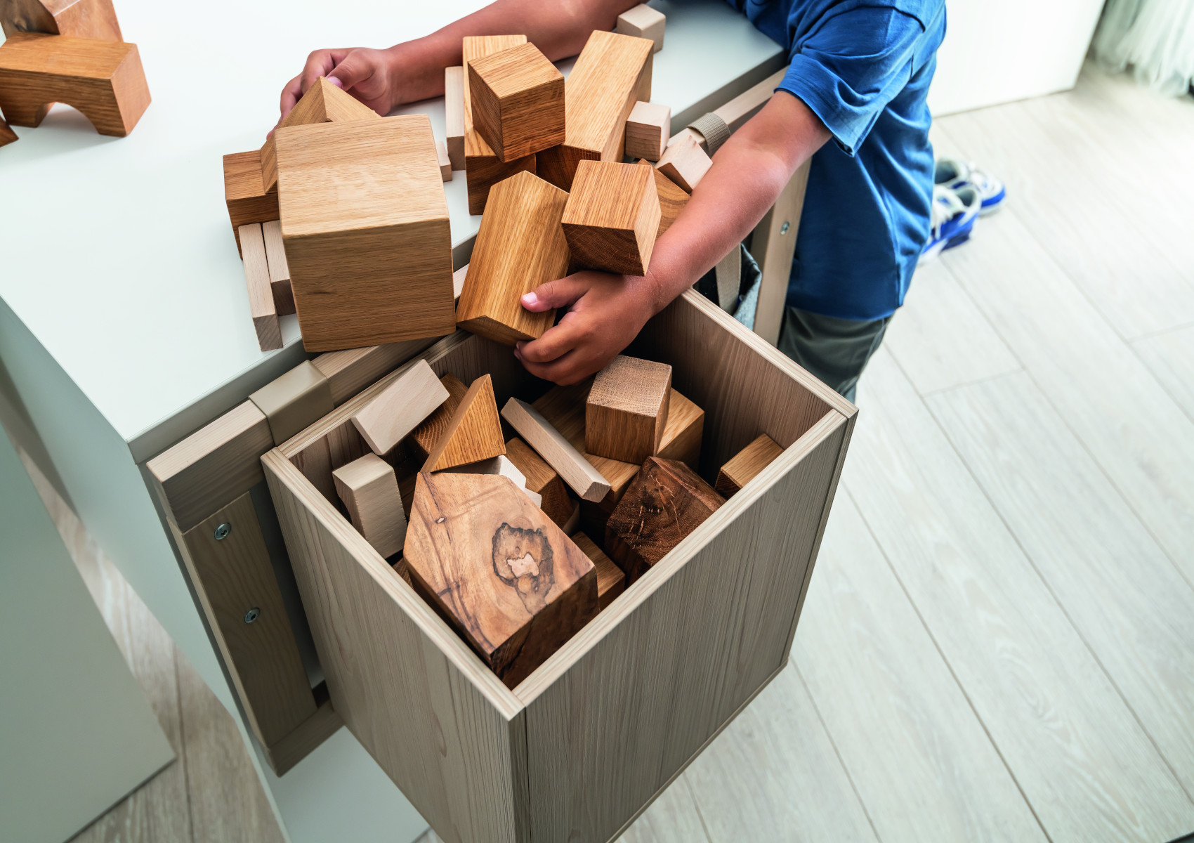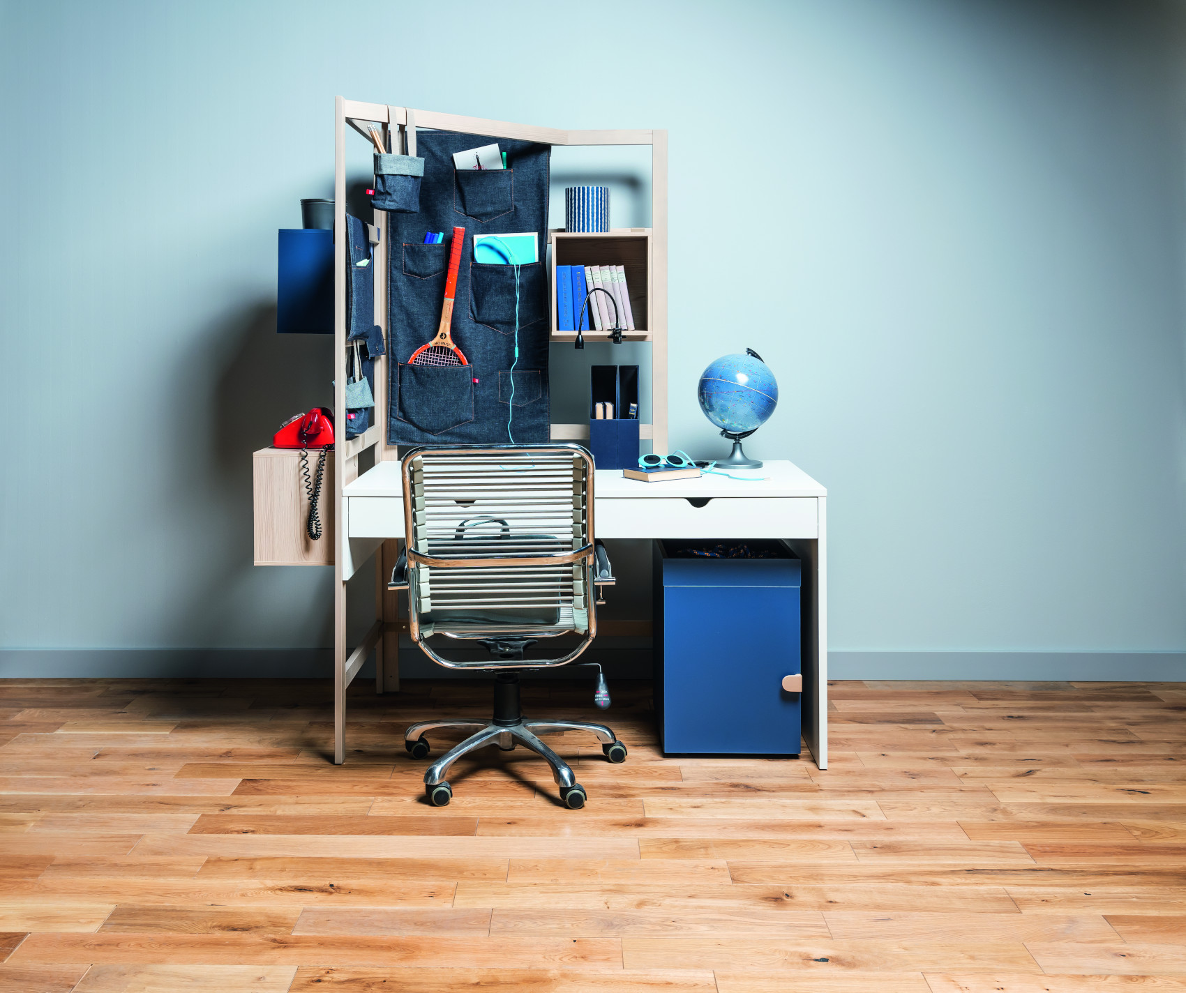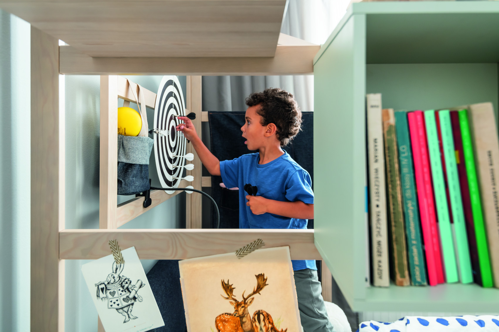 Box můžete zavěsit na žebřík Stige, kam si můžete vložit knihy, psací potřeby, sešity nebo hračky.