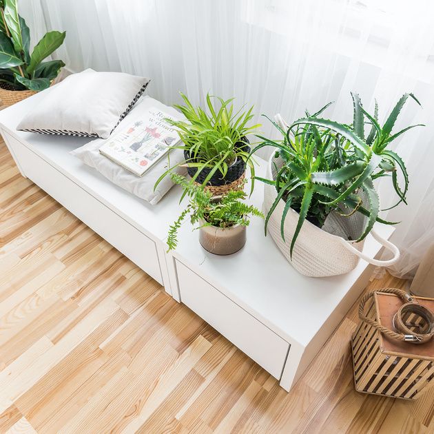 K podestě lze namontovat skříňka kostka, skříňka se zásuvkami, skříň nebo komoda.