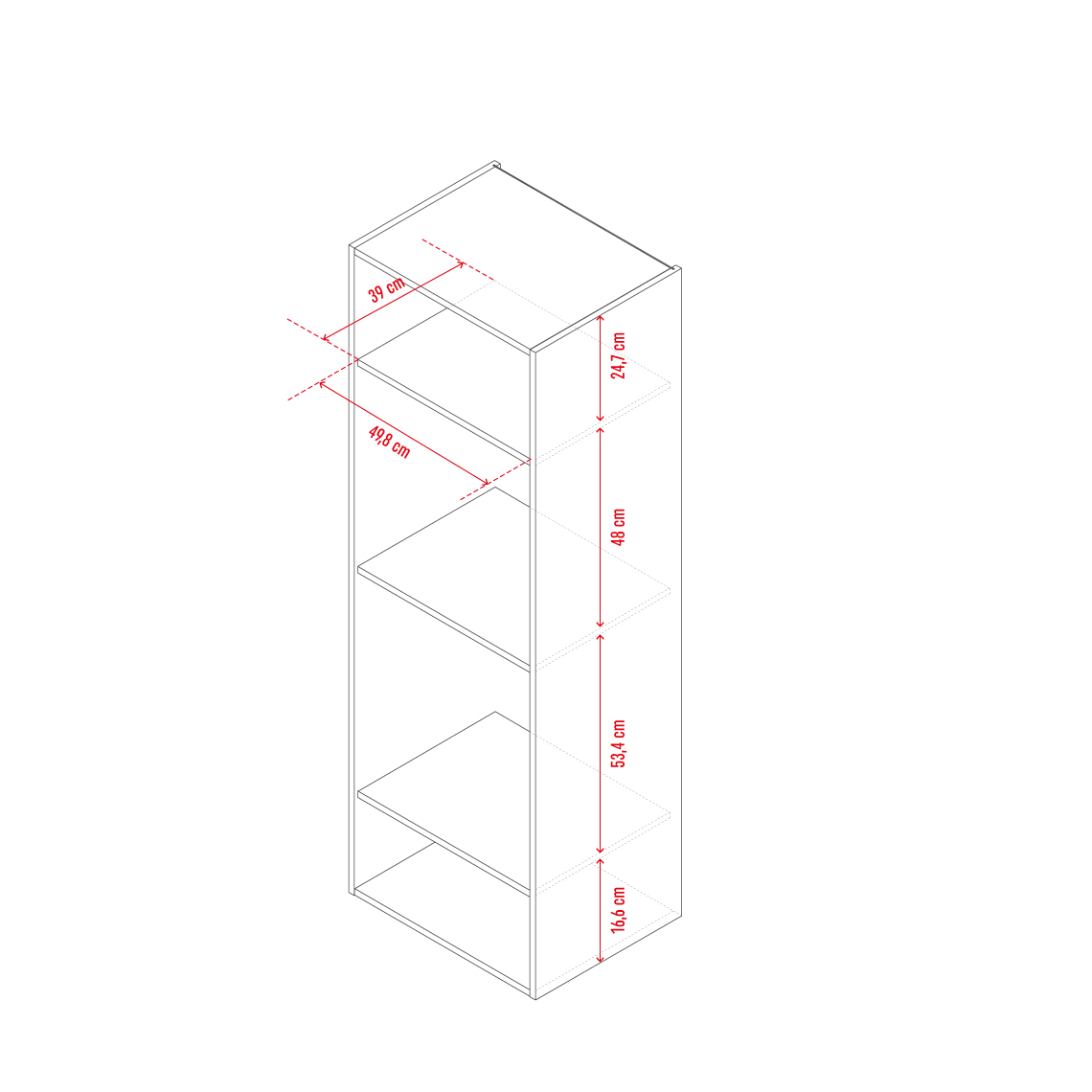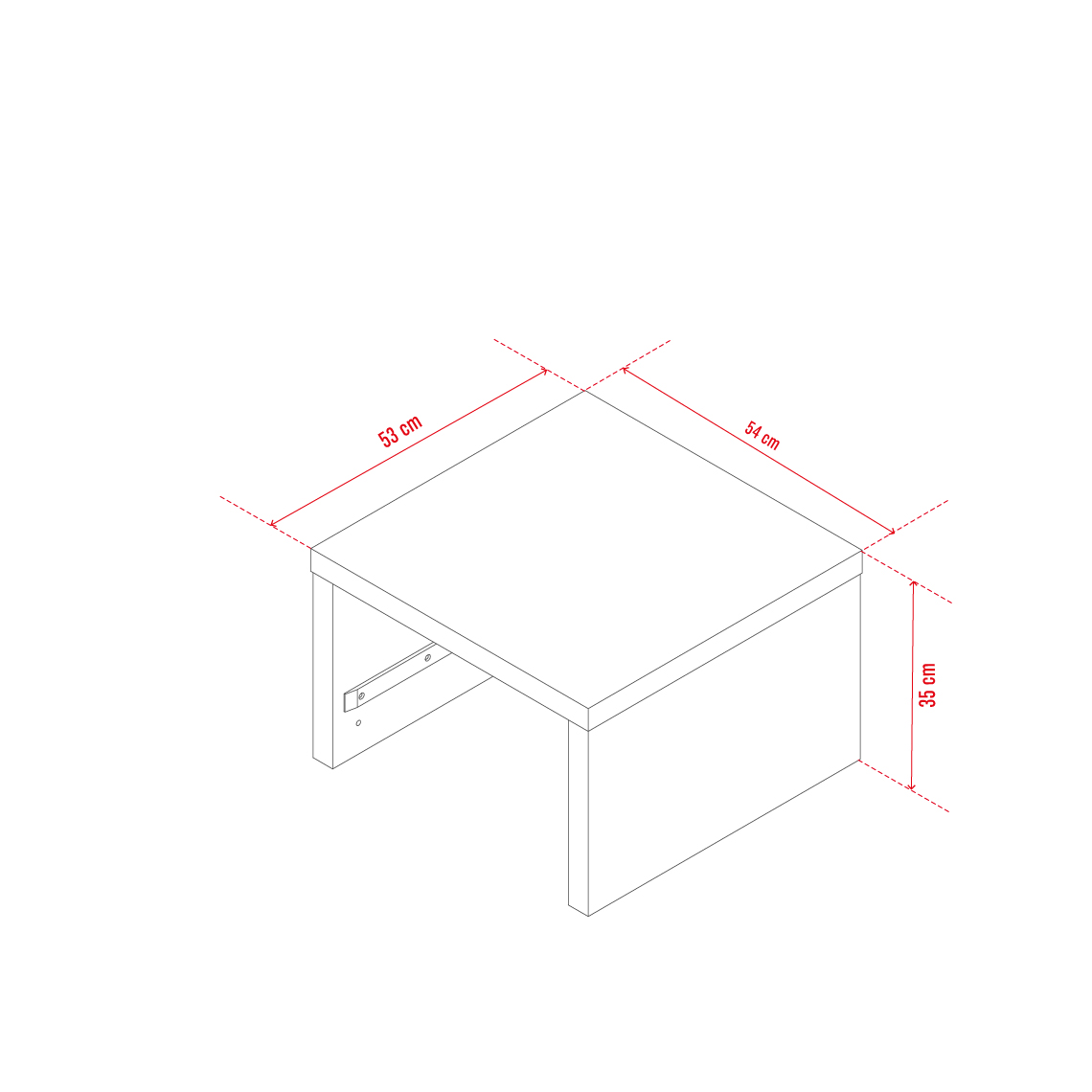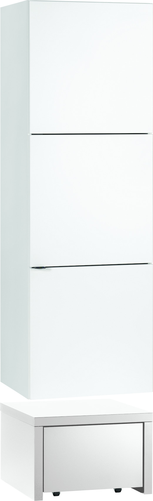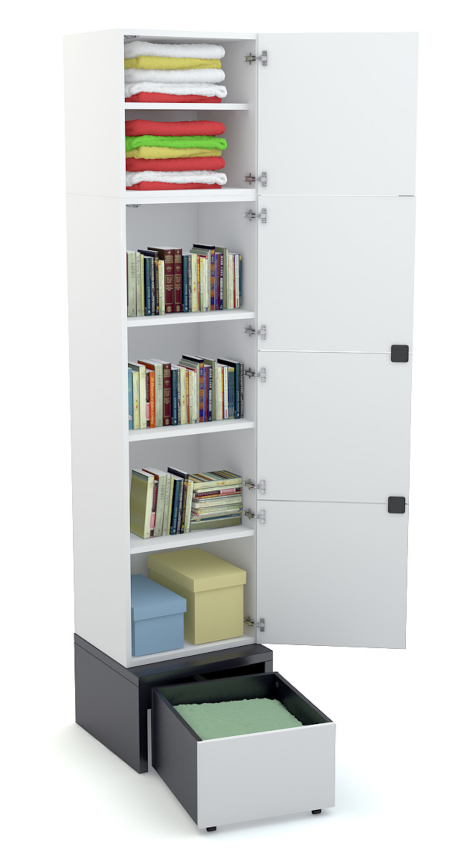 Ve vnitřním prostoru jsou vloženy 3 police, z nichž hodní a spodní police mají libovolně nastavitelnou výšku. Součástí podesty je zásuvka k uložení ložního prádla nebo přikrývky. Zásuvka je oboustranná, tudíž si lze zvolit barevnou variantu přední strany - černá nebo bílá.