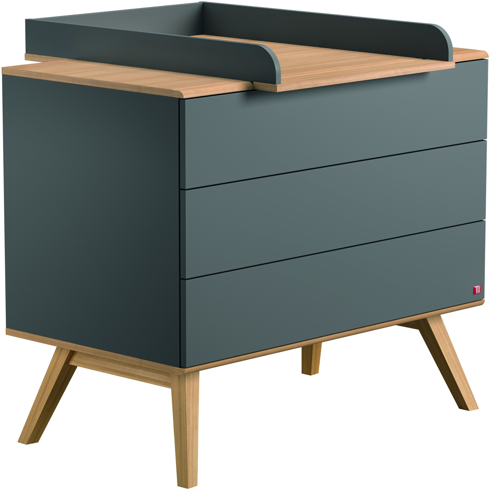 Moderní dětský přebalovací pult Nature vás zaujme svým jednoduchým a elegantním designem. Je vyroben z kvalitního lamina odolného vůči nečistotám, vlhkosti a poškození a masivního dubového dřeva. Nabízíme vám 2 barevné varianty - grafit/dub nebo bílá/dub.