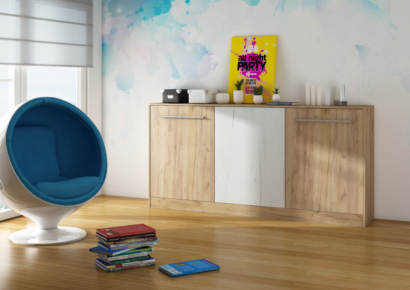 Originálně řešená sklápěcí postel Roger ze 16 a 25 mm silného lamina s ABS hranami je na výběr z několika dezénů. Jednoduchá manipulace zajišťuje bezproblémové užívání. Při složení postel vypadá jako komoda a díky hloubce 43 cm nezabere příliš místa.
