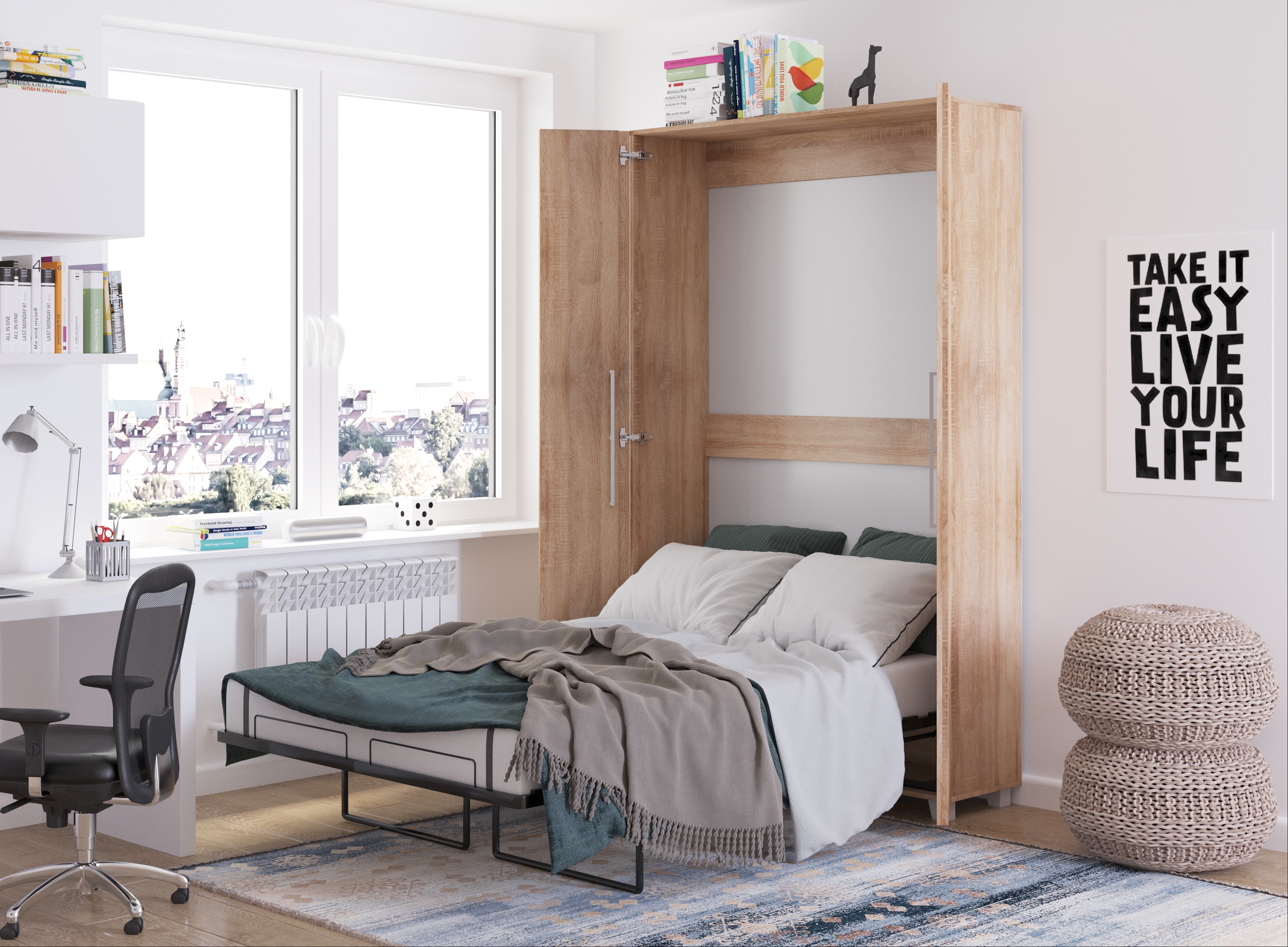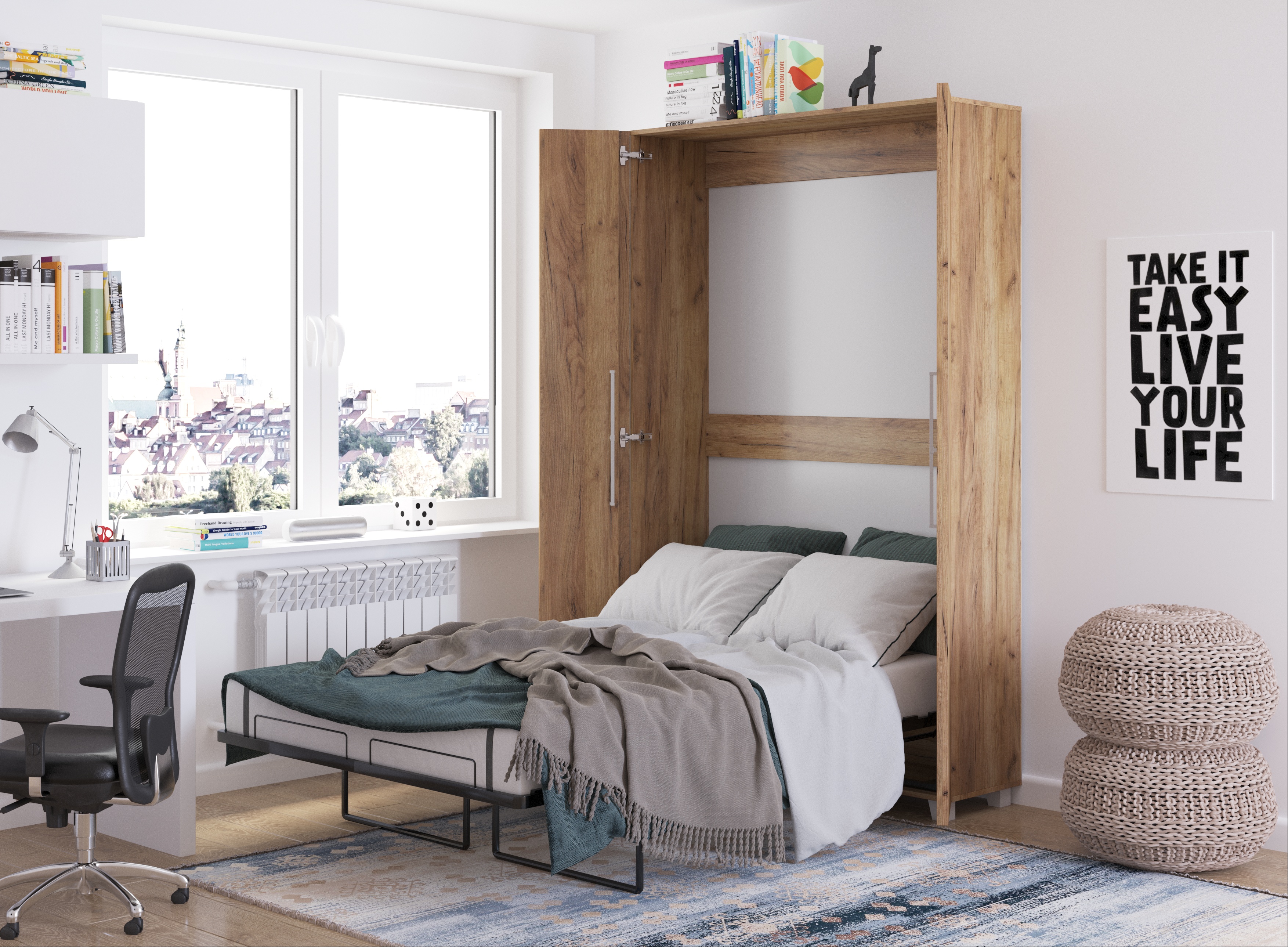 Postel dodáváme bez matrace, doporučujeme matraci o rozměru 120x200 cm a maximální výšce 15 cm.Sklápěcí postel Teddy si můžete vybrat z několika moderních dřevodekorů.