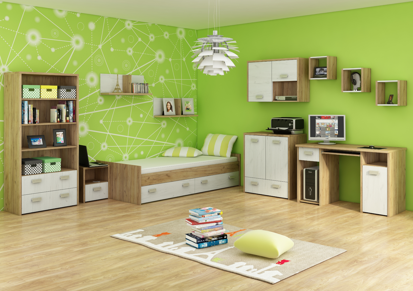 Designový systémový nábytek do studentského pokoje Kitty 3 je vyroben z velmi kvalitních LTD materiálů s ABS hranou 0,6 mm. Madla jsou vyrobeny z odolného tvrzeného plastu. Dětský pokoj plní v životě ratolestí nezastupitelnou roli. První kroky v něm tráví dítě hraním, takže nároky na vybavení nejsou tak velké. Až s nástupem do školy začnou postupně využívat veškeré zařízení svého pokoje. Mávnutím kouzelného proutku bude z herny dětská pracovna. Nabízíme Vám tuto moderní sestavu Kitty 3. Pokud se Vám nelíbí nebo nehodí námi navržený pokoj, není nic jednoduššího než si ho sestavit sami. Cena lůžka je včetně dvou šuplíků, ale nezahrnuje rošt a matraci o rozměrech 90x200 cm, dále nezahrnuje skříň, tyto modely lze dokoupit.
