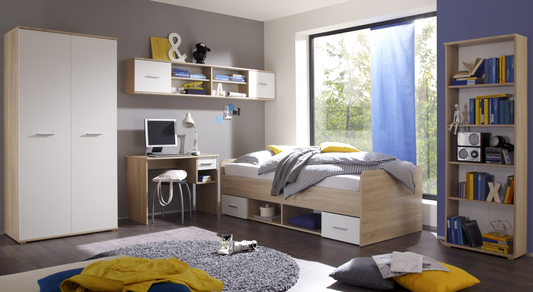 Studentský pokoj Sety vás zaujme svým jednoduchým a elegantním designem s přírodními detaily. Jednotlivé komponenty jsou vyrobeny z kvalitního lamina potaženého bílou fólií v kombinaci s dubem carpatia. Dvířka a zásuvky mají jednoduché bílé úchyty.