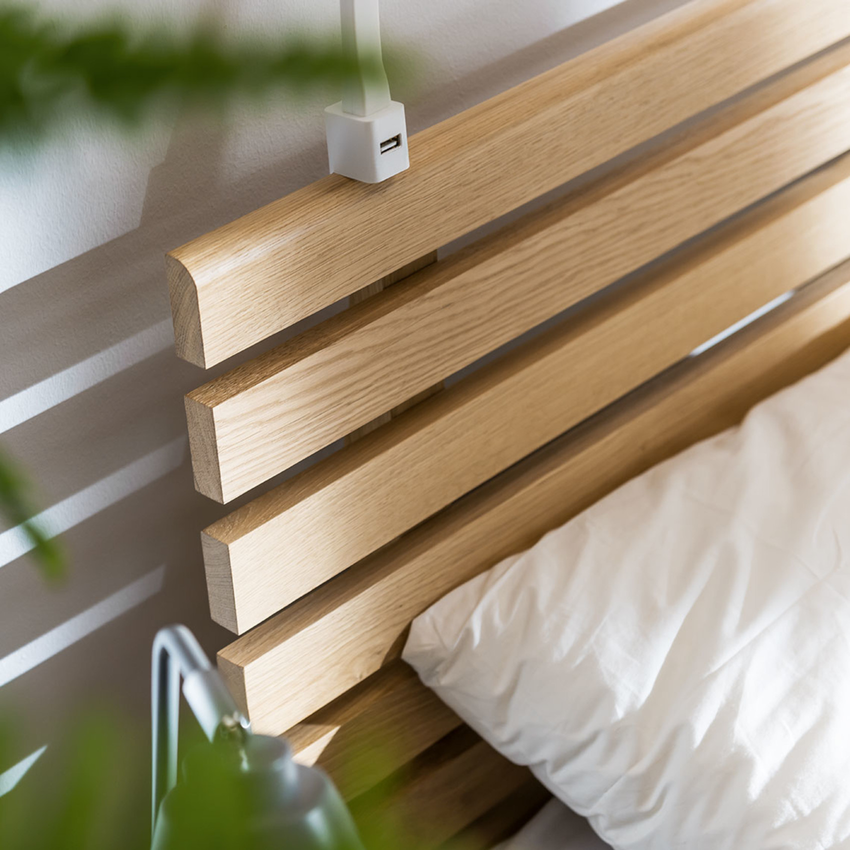 Lampu připevníte ke krajním stranám postele 2 šroubky. Balení obsahuje také nabíjecí zařízení pro lampu.