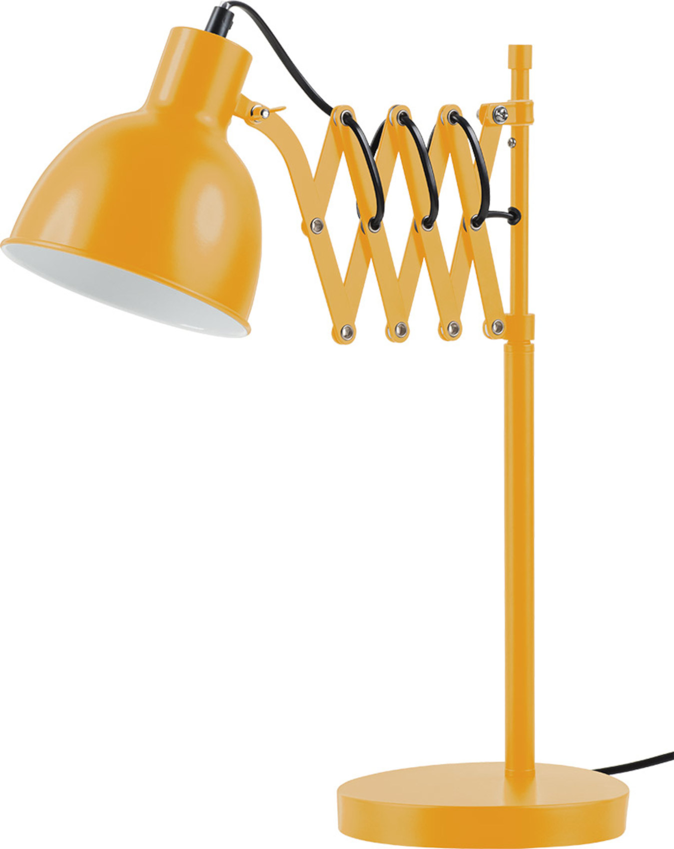 Stolní lampa Collo vás zaujme svým jedinečným designem. Je vyrobena z kovu, který vám zaručí kvalitu a odolnost. Součástí lampičky je stínidlo na výsuvném rameni, které lze prodloužit až o 15 cm. Máte možnost si vybrat ze 2 barevných variant - žlutá nebo černá.