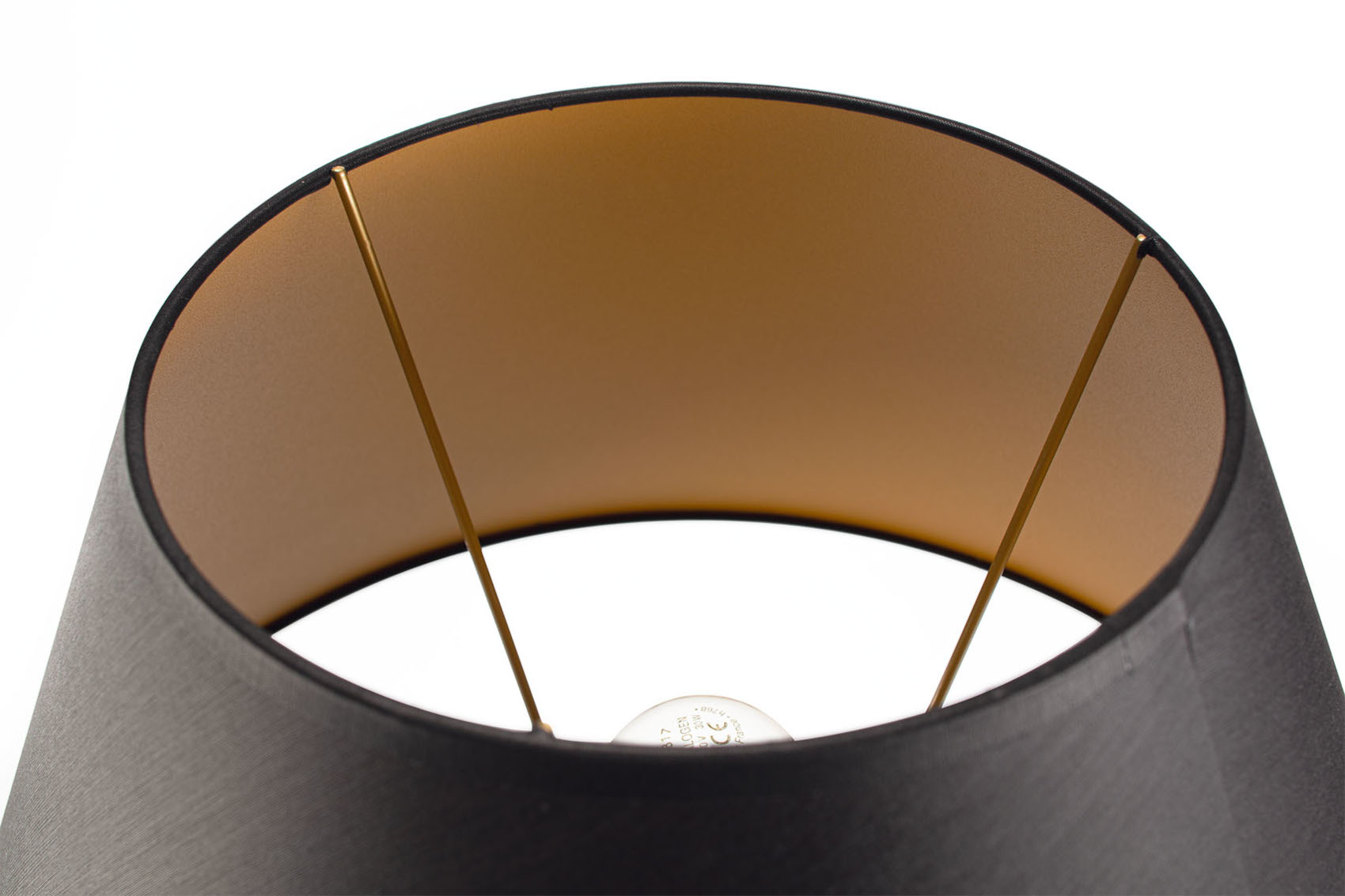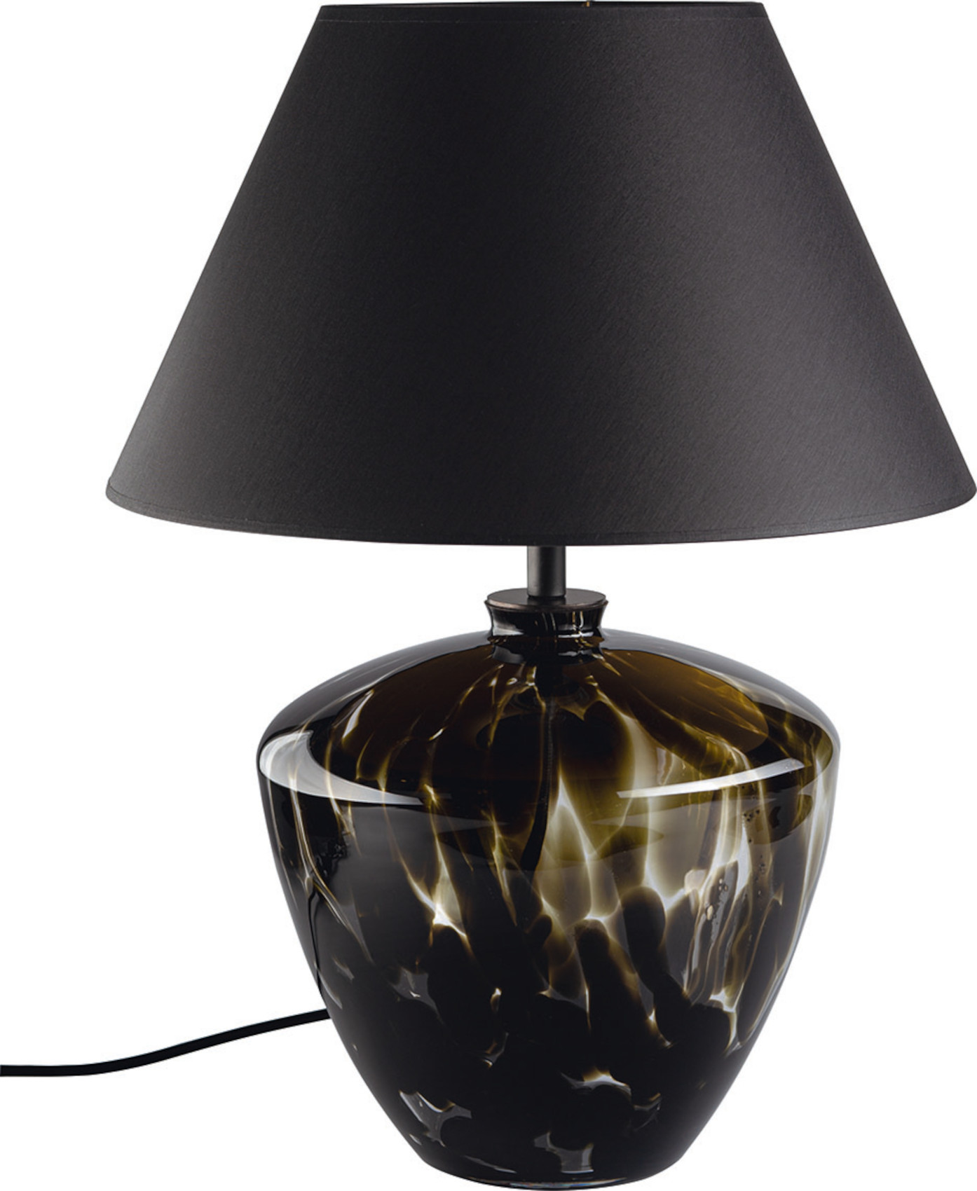 Stolní lampa Parma vás zaujme svým luxusním designem ve skandinávském stylu. Základna je vyrobena z ručně tvarovaného kouřového skla, které vám zaručí kvalitu a odolnost. Stínidlo je z černé lněné textilie a z vnitřní strany je matně zlaté.
