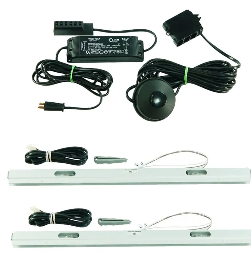 LED osvětlení 3-L-BC-2-0400-02 s teplým bílým světlem. Nabízí 3 směry šíření světla - nahoru, dolů a přes skleněnou polici.