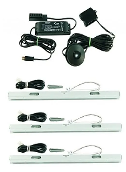 LED osvětlení 3-L-BC-3-0400-02 s teplým bílým světlem. Nabízí 3 směry šíření světla - nahoru, dolů a přes skleněnou polici.