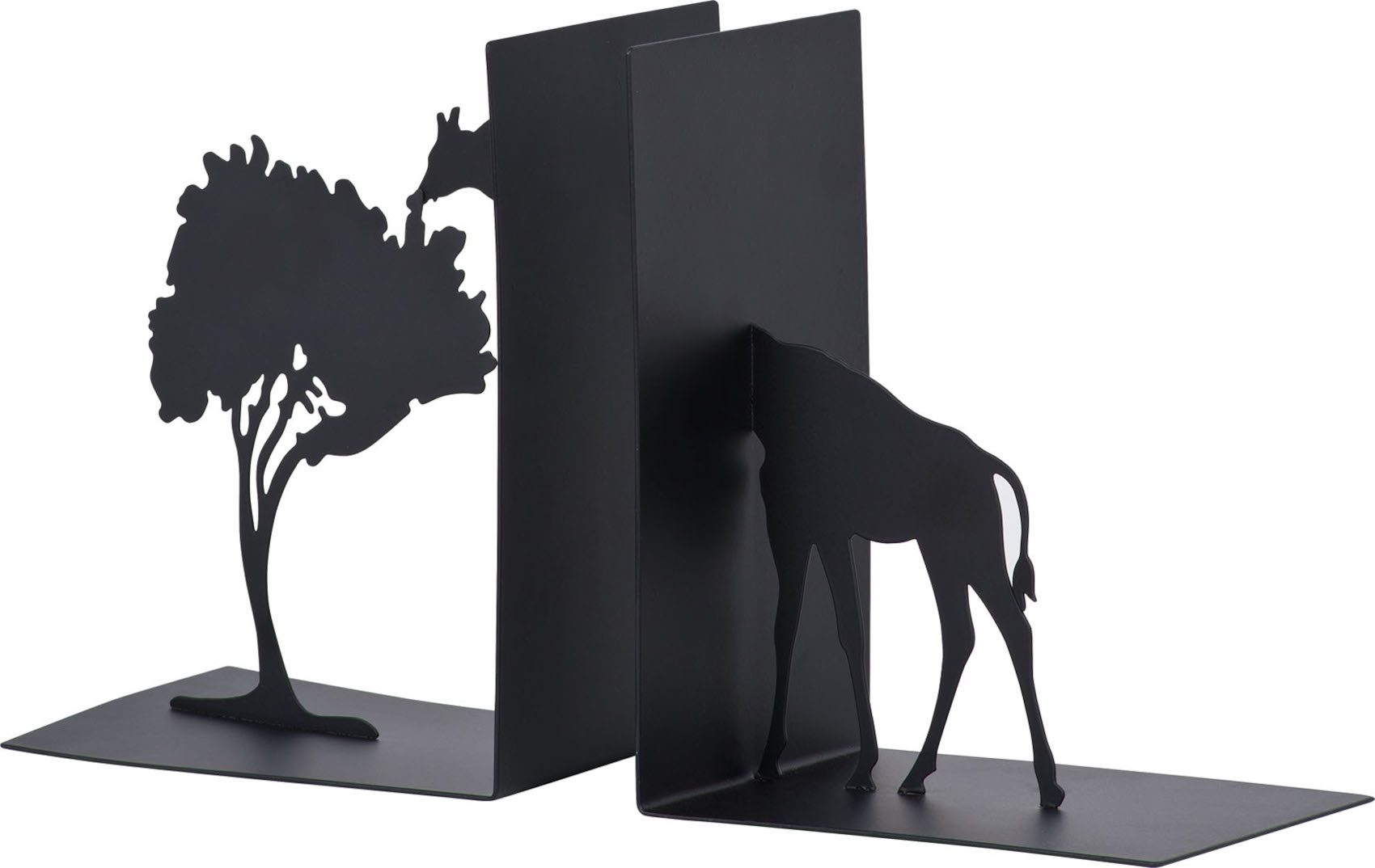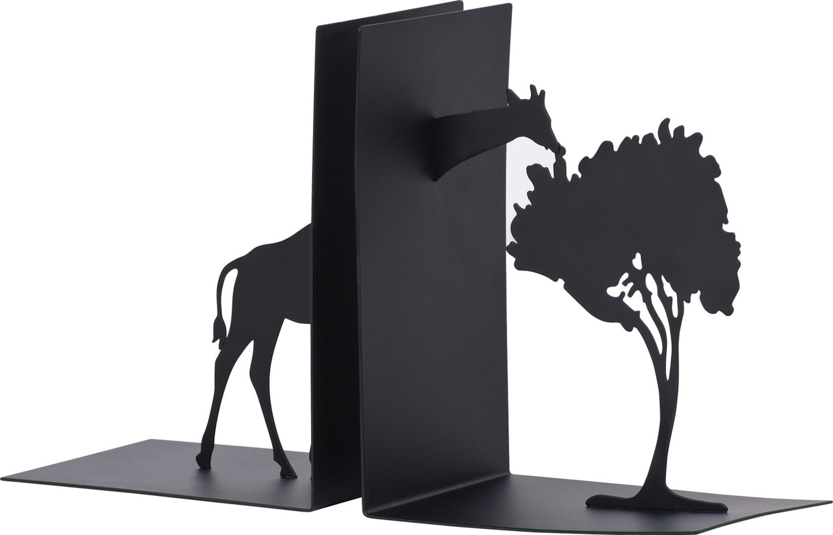 Držák na knihy Safari vás zaujme svým jedinečným designem se zvířetem. Je vyroben z černě lakovaného kovu, který vám zaručí stabilitu, kvalitu a odolnost. Držák vám pomůže udržet knihy a zabrání jejich padání.