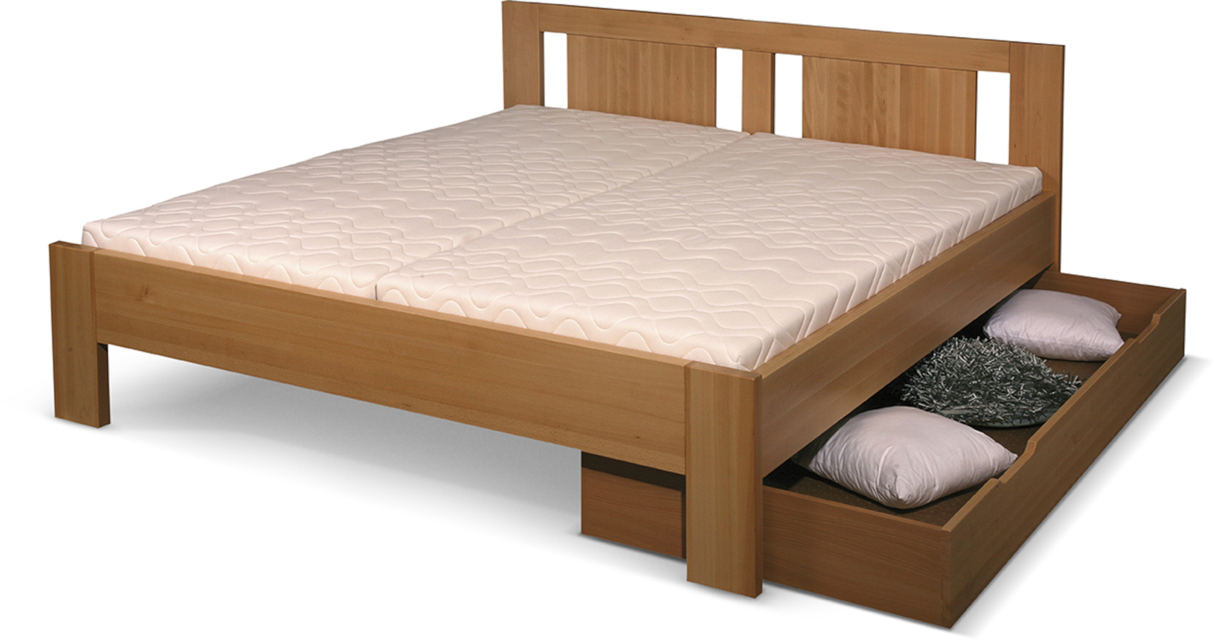 Máte možnost si vybrat ze 2 variant - 156 cm nebo 196 cm. Větší rozměr zásuvky lze využít, po vložení matrace, jako lůžko pro příležitostné spaní. Na výběr máte z několika variant barevného moření a sladit tak zásuvku s postelí a ostatním nábytkem v místnosti.