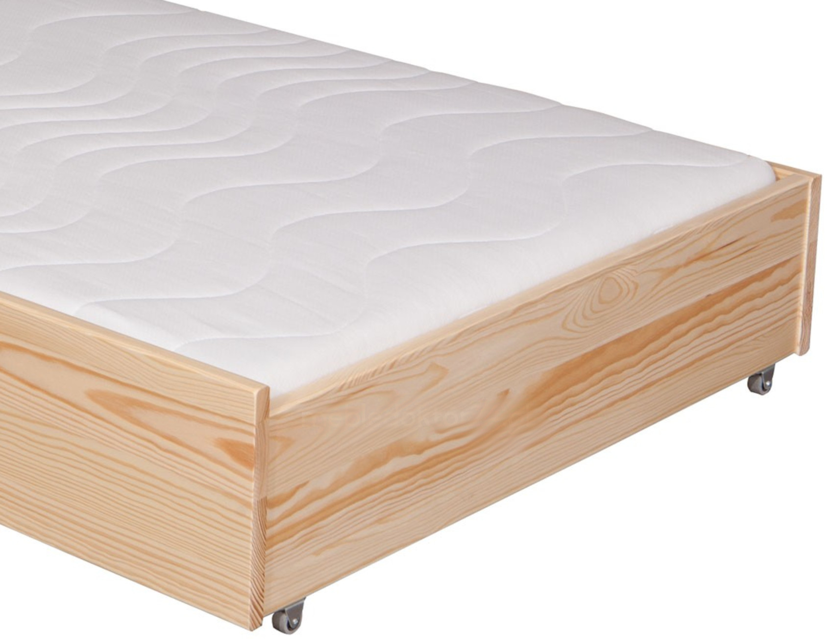 Přídavné lůžko je vyrobeno z masivního borovicového dřeva, které vám zaručí kvalitu, dlouhou životnost, odolnost a stabilitu. Dřevo je chráněno speciálním ekologickým lakováním. Na spodní straně jsou gumová kolečka, díky kterým se lůžkem lépe manipuluje. Máte na výběr z několika odstínů moření dřeva.