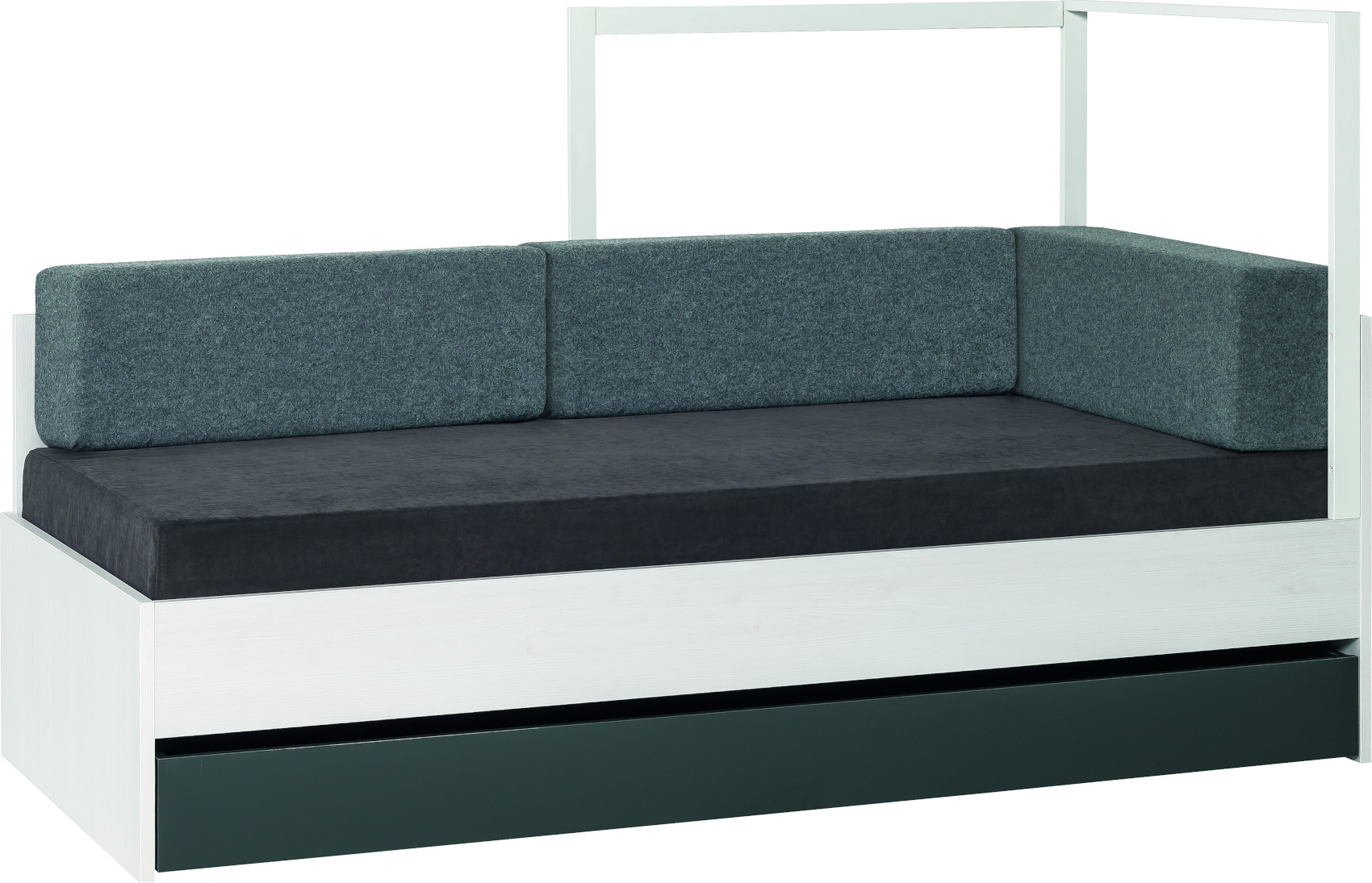 Úložný prostor pro postel a kanape Nest je vyroben z kvalitního lamina odolného vůči nečistotám, poškrábání a vlhkosti. Na spodní straně jsou připevněna kolečka, díky kterým můžete se zásuvkou libovolně a snadno pohybovat.