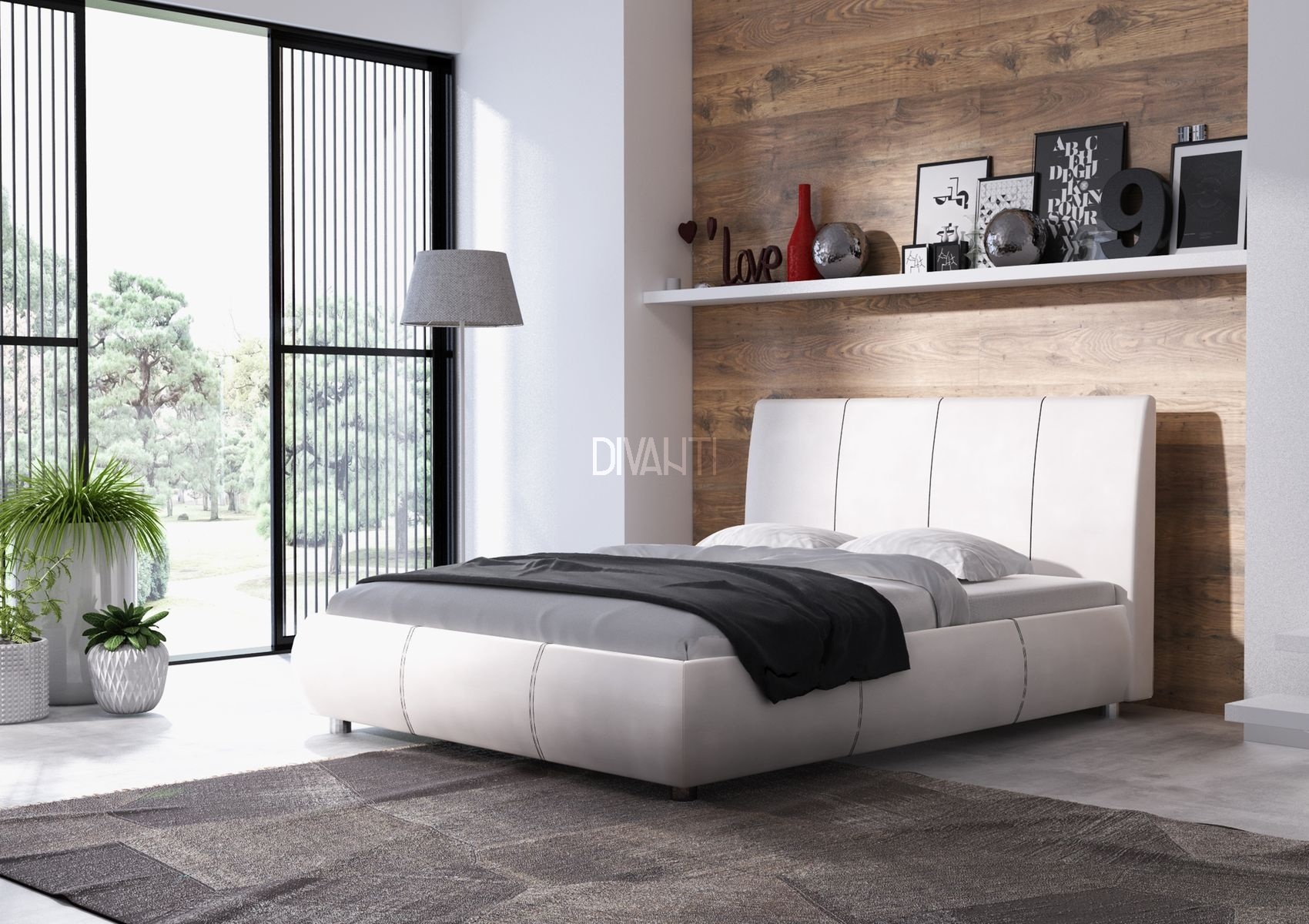 - moderní postel pro matraci 160 cm vyrobená v kůži nebo látce, vyberte si z široké škály čalounění
