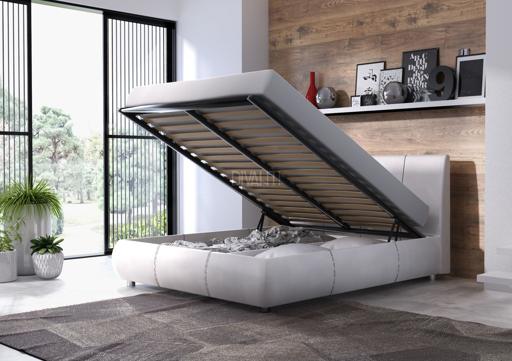 - postel obsahuje rozměrný úložný prostor a pneumatický zvedací rošt