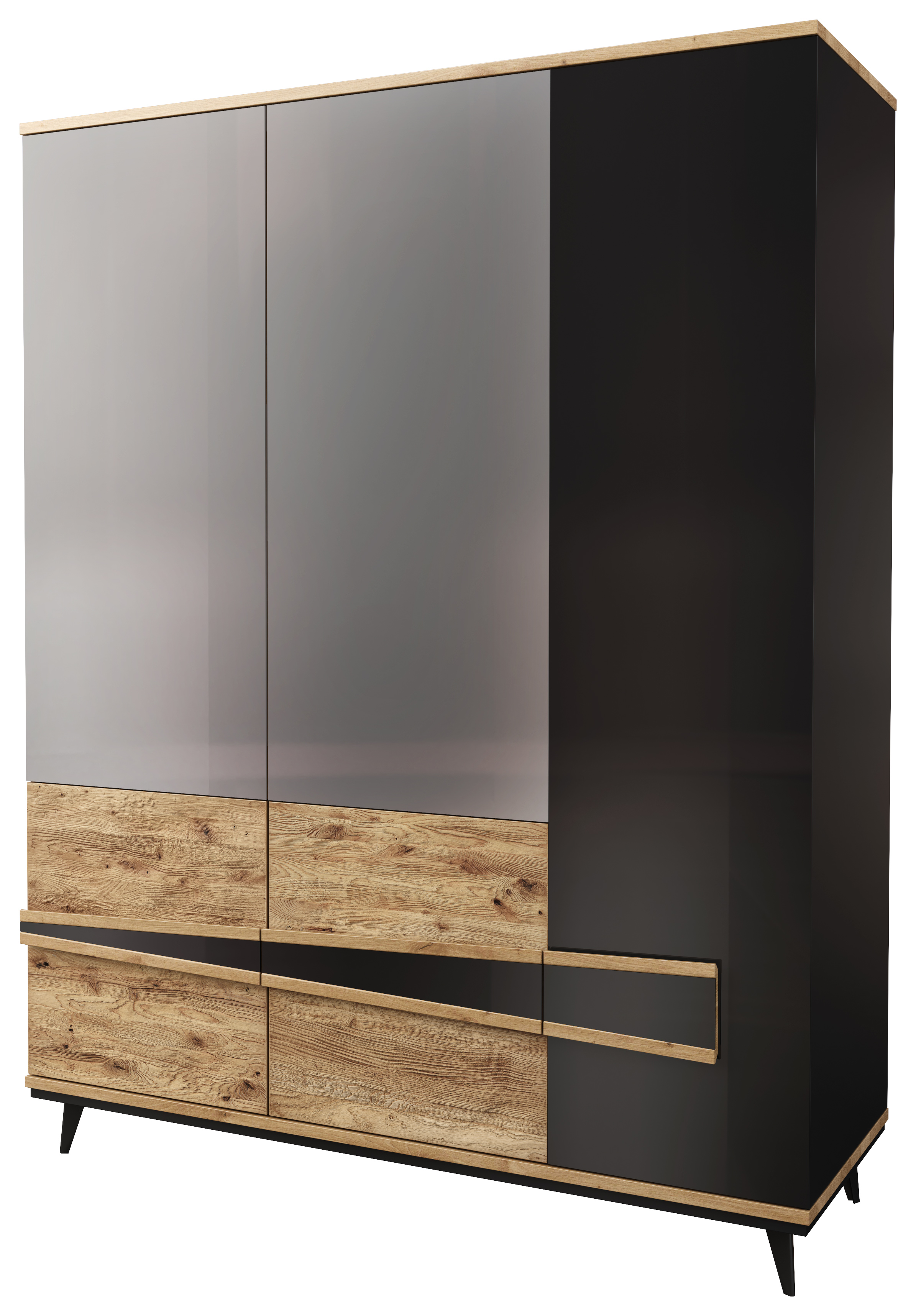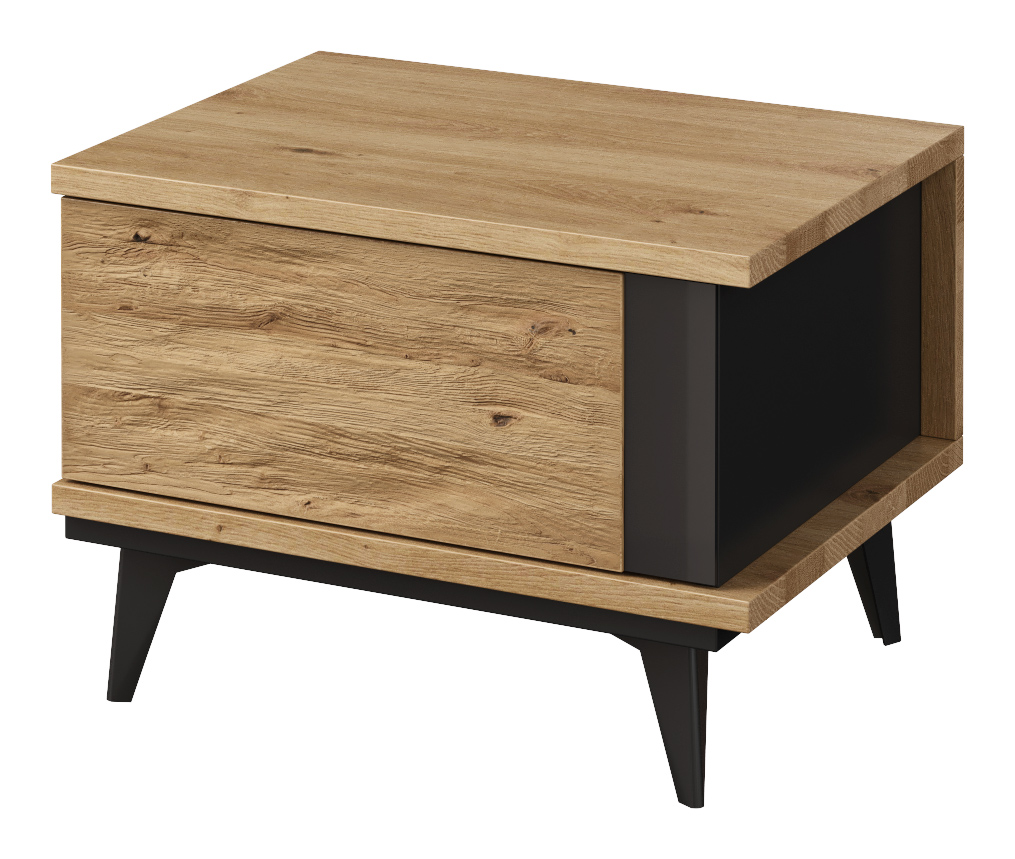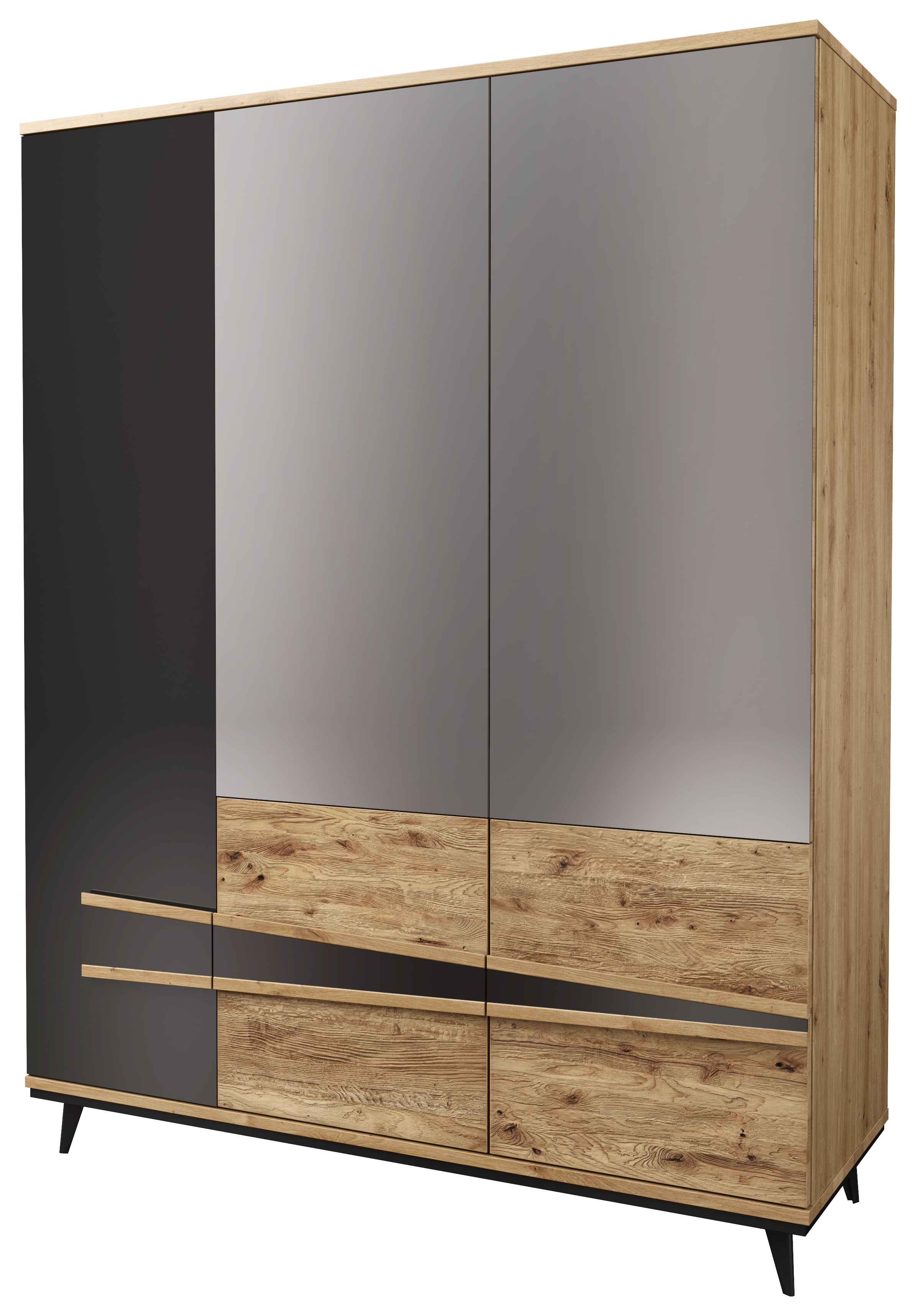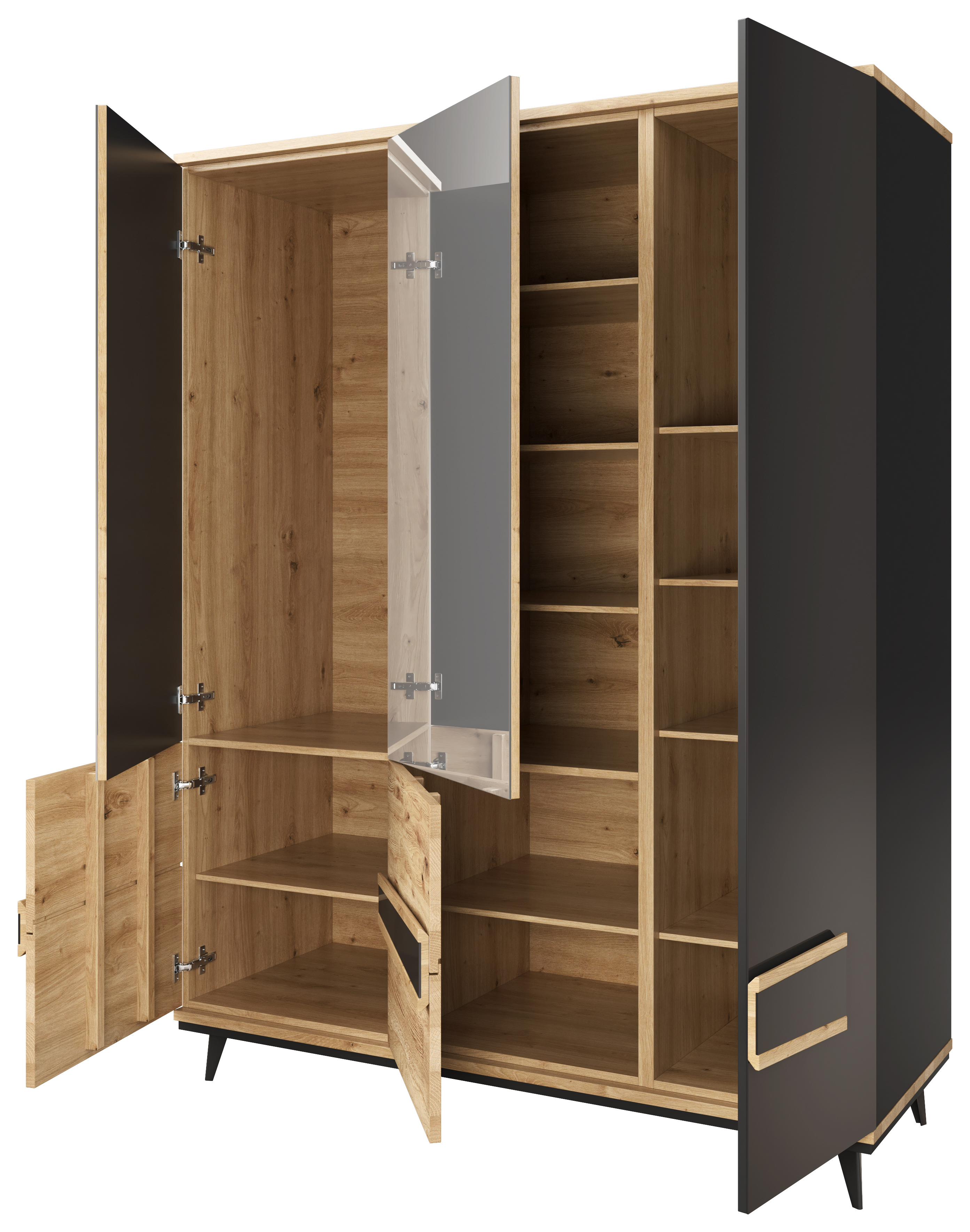 Ložnice Etna vás zaujme svým industriálním designem. Jedinečným prvkem jsou zvláštní rukojeti na dvířkách, které dodají nábytku nádech elegance. Produkty jsou vyrobeny z masivního dubového dřeva a přírodní dubové dýhy s černými skleněnými prvky a dvířky. Kvalitní technologie lakování a moření navodí přírodní vzhled dřeva a zvýrazní tak jeho léta. Nábytek stojí na černých kovových nožkách, které provzdušní váš celkový prostor. Dvířka i zásuvky v celém systému mají jednoduchý systém tichého dovírání.