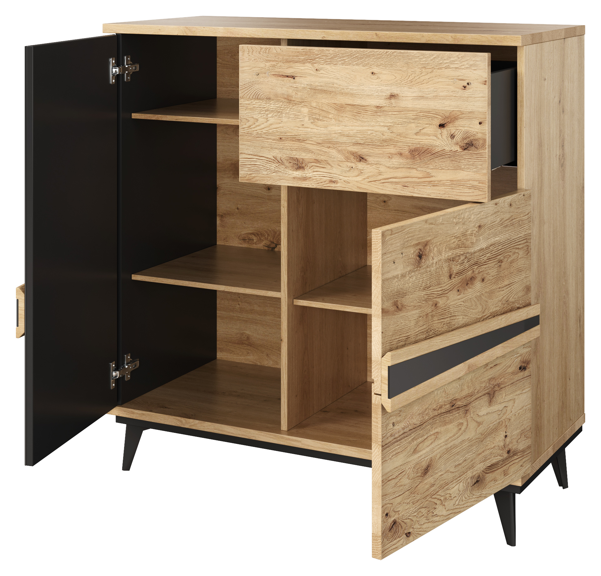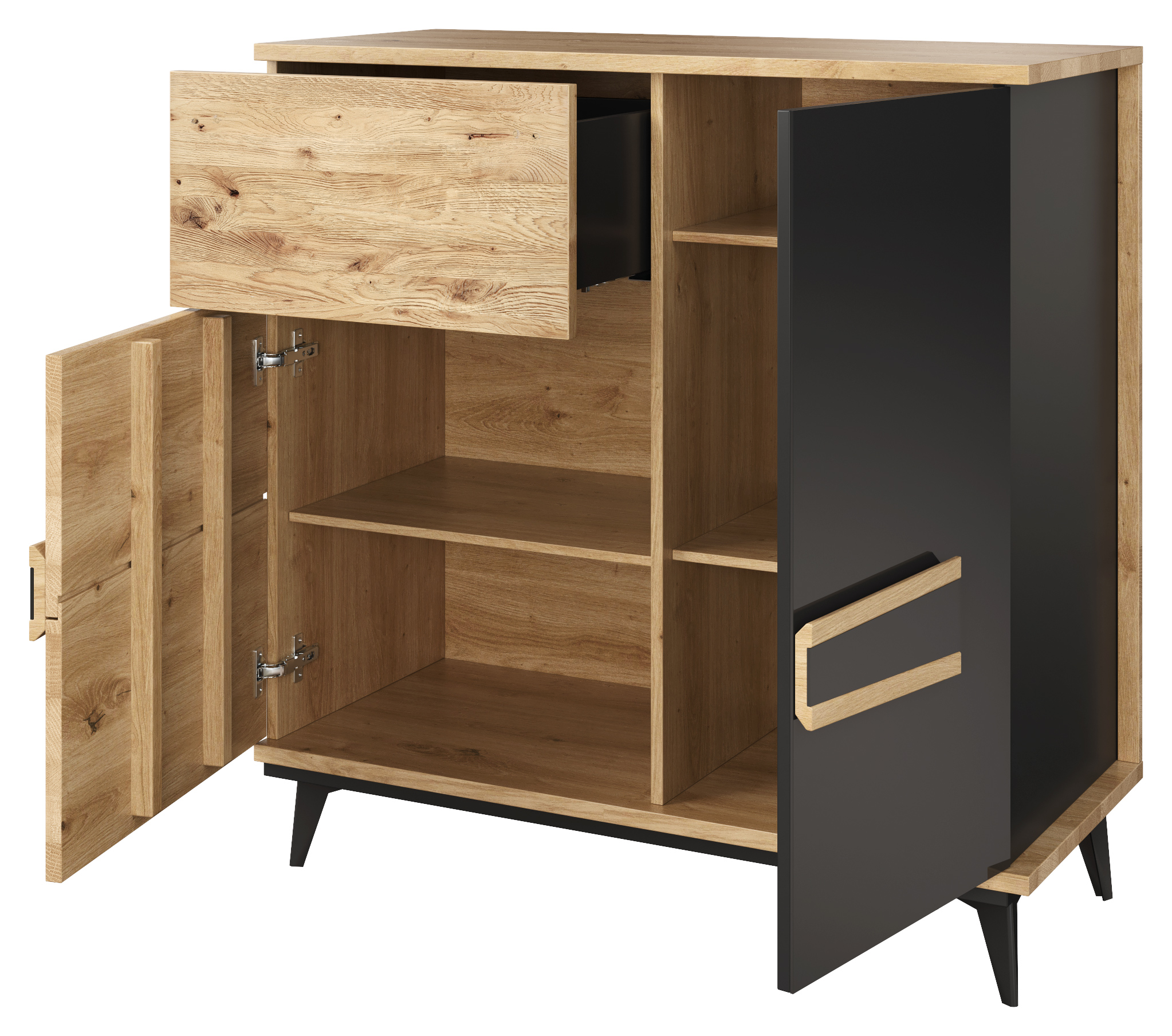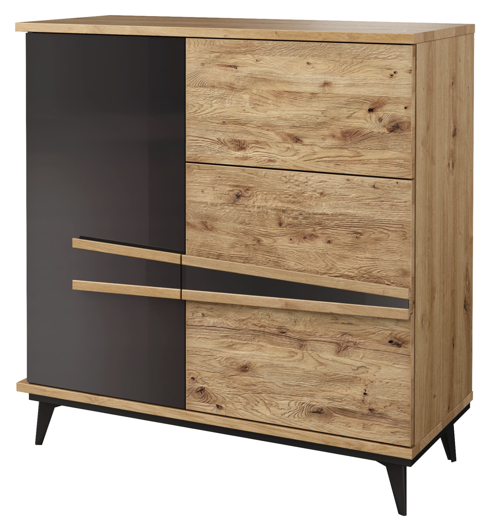 - Komoda Etna 2D1SZ (pravé provedení)**: šířka 108 cm, hloubka 50 cm, výška 111 cm