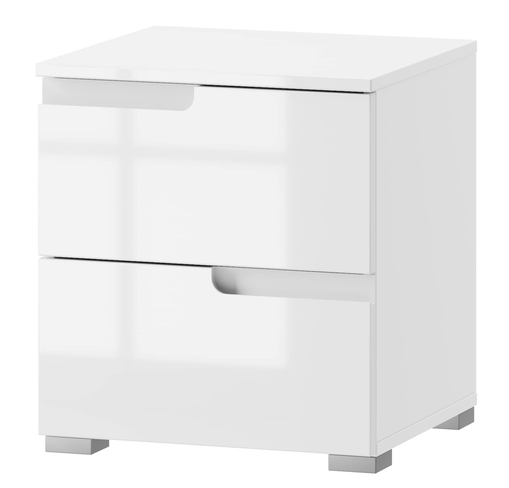 Ložnice Selene vás zaujme svým luxusním designem. Nábytek je vyroben z MDF dřevotřísky s tenkou vrstvou masivního dřeva v kombinaci s kvalitním laminem potaženého bílou fólií. Přední části jsou v lesku a korpusy s horními deskami jsou matné. Komody a skříňky stojí na nízkých plastových nožkách ve stříbrném odstínu.