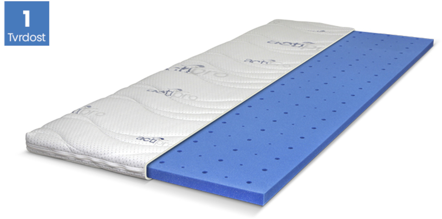 Krycí matrace Blue Topper VISCO je vyrobena z Visco pěny, která vám zaručí měkký a pohodlný spánek. Použitý materiál poskytuje oporu páteře a reaguje na tělesnou teplotu. Díky speciální technologii je skvěle prodyšná a hygienická. Topper je vhodný pro osoby preferující měkčí povrch. Dělitelný a zónově prošitý potah ActiPro zvyšuje prodyšnost matrace. Jedná se o zdravotní antibakteriální výrobek.