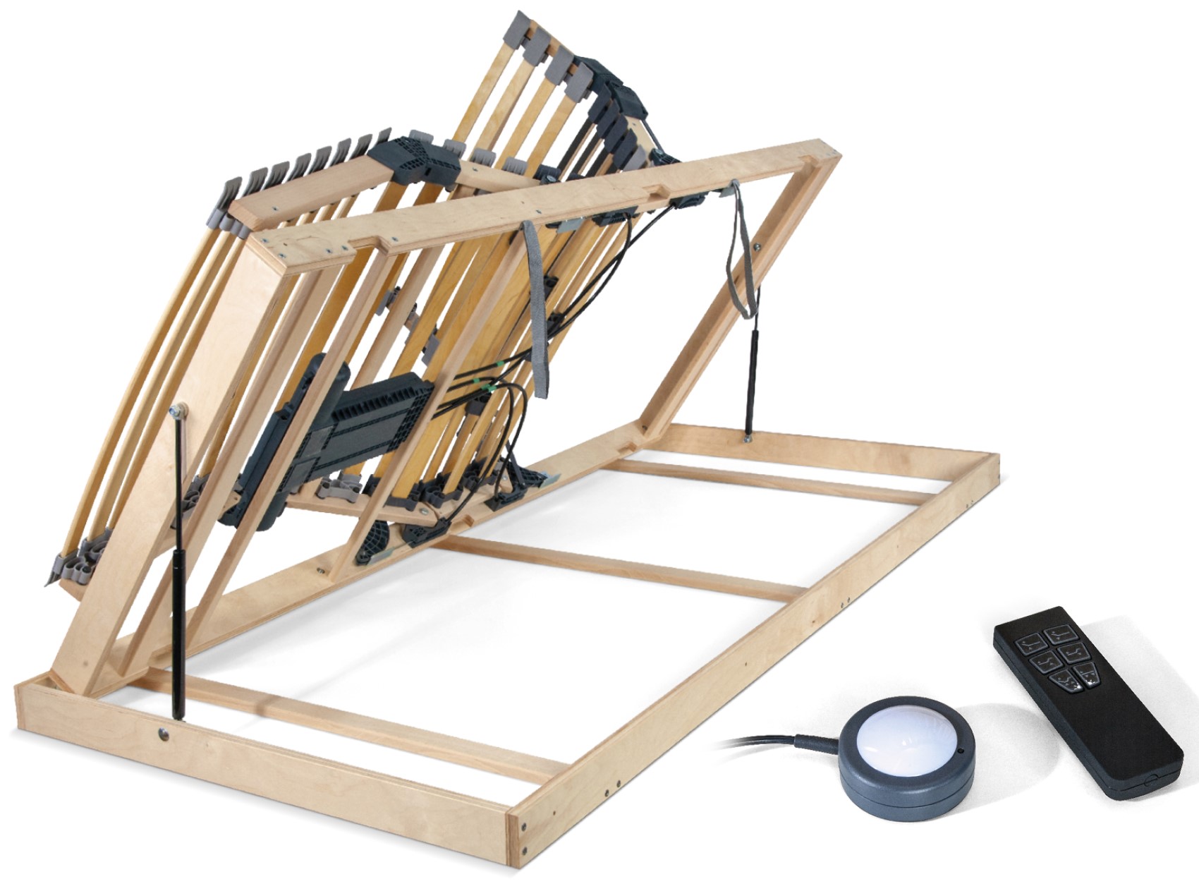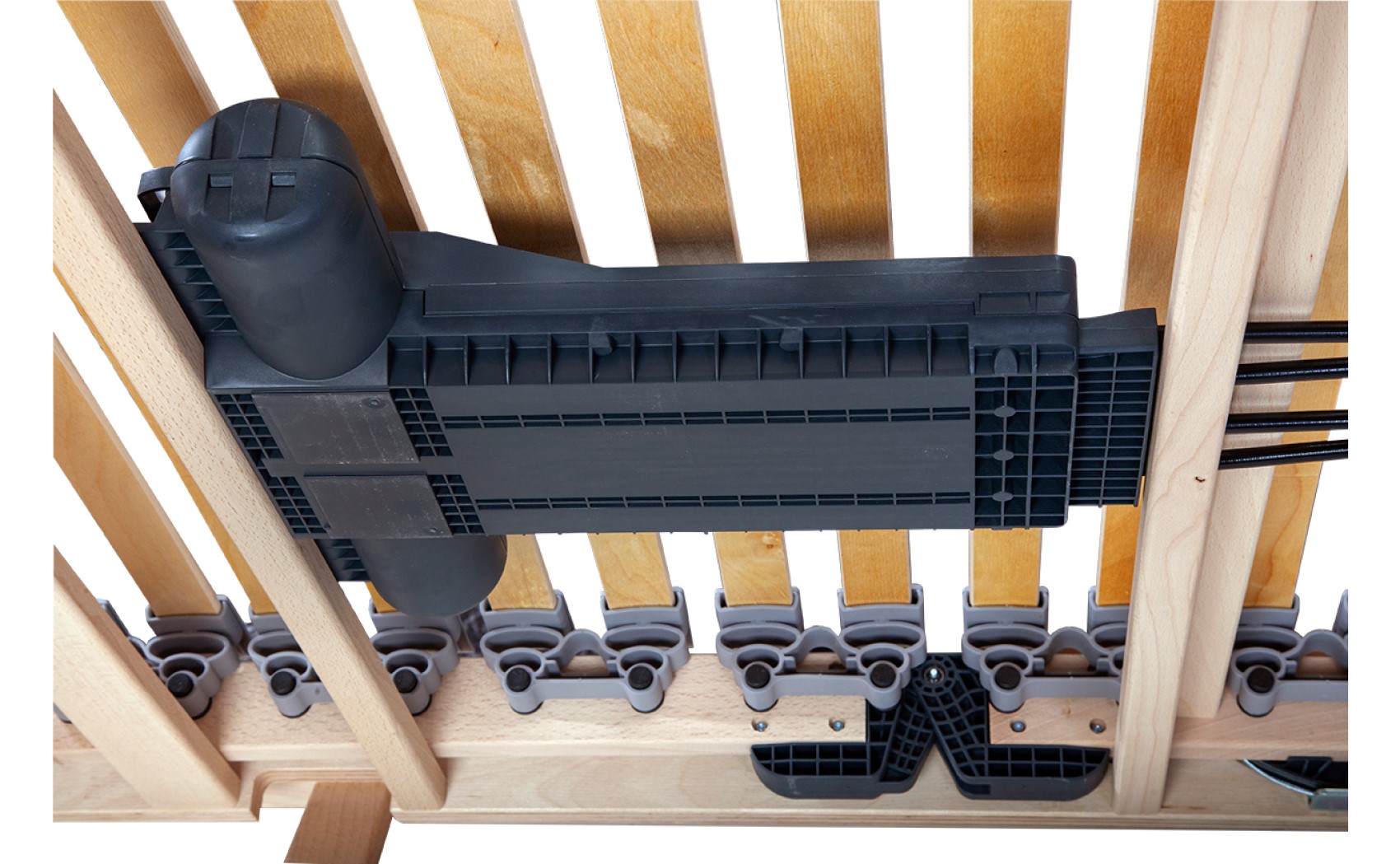 Výklopný postelový rošt Premio Side Mot je sestaven z jednotlivých lamel z bukového dřeva, které jsou uložené ve výkyvných pouzdrech z kaučuku. Součástí je 6 lamel s nastavitelnou tuhost. Je polohovatelný pomocí tichého motorového systému s podsvíceným bezdrátovým dálkovým ovládáním. Rošt má také podsvícení úložného prostoru. Máte na výběr z několika variant rozměrů.