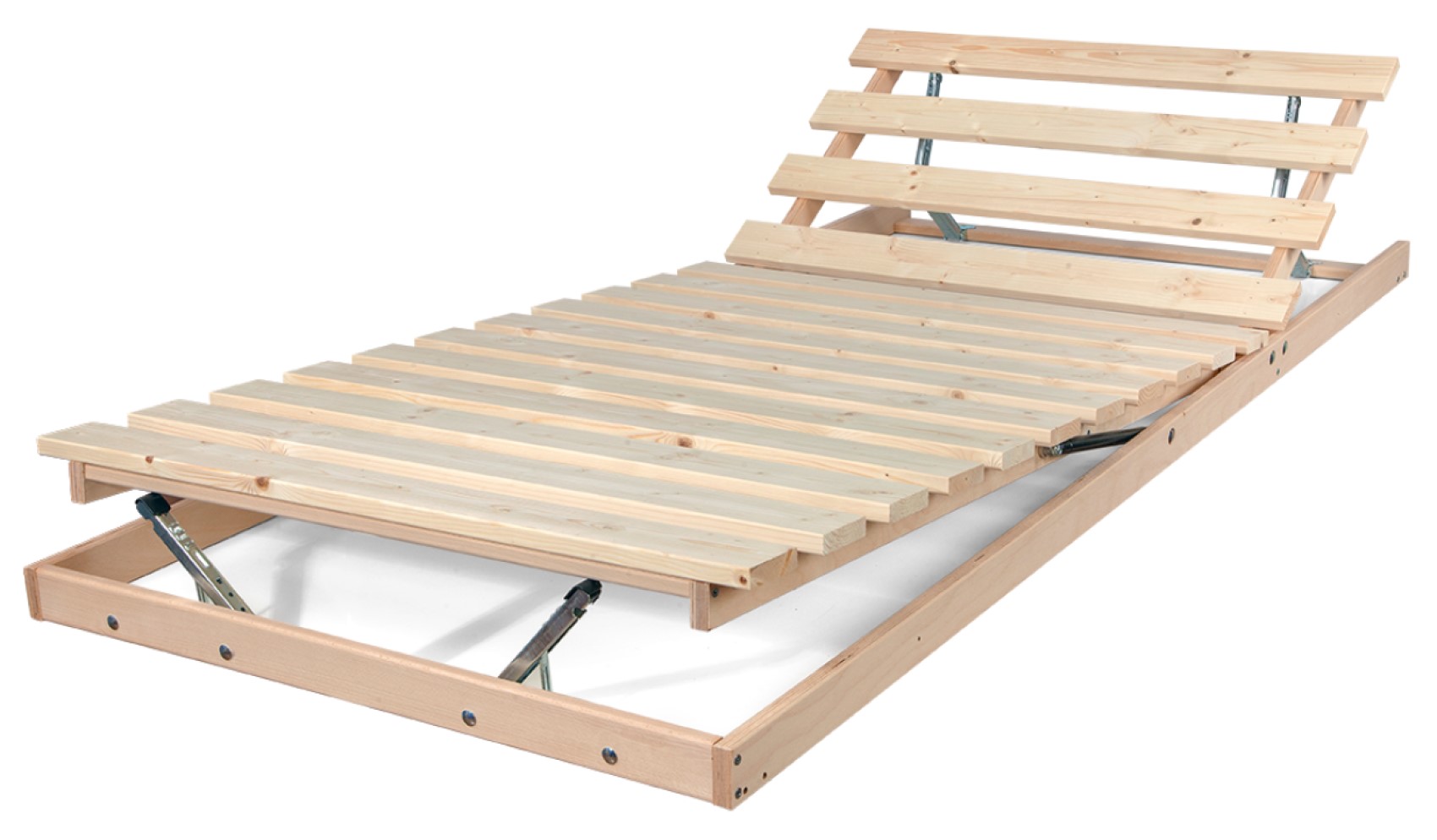 Postelový rošt Masiv Maxi Flex Up je sestaven z 16 lamel z masivního bukového dřeva. Je polohovatelný - má 13 poloh v oblasti hlavy a 5 v oblasti nohou. Rošt má výklopný systém pomocí vzduchových pístů pro přístup k uloženému prostoru. Máte na výběr z několika variant rozměrů.