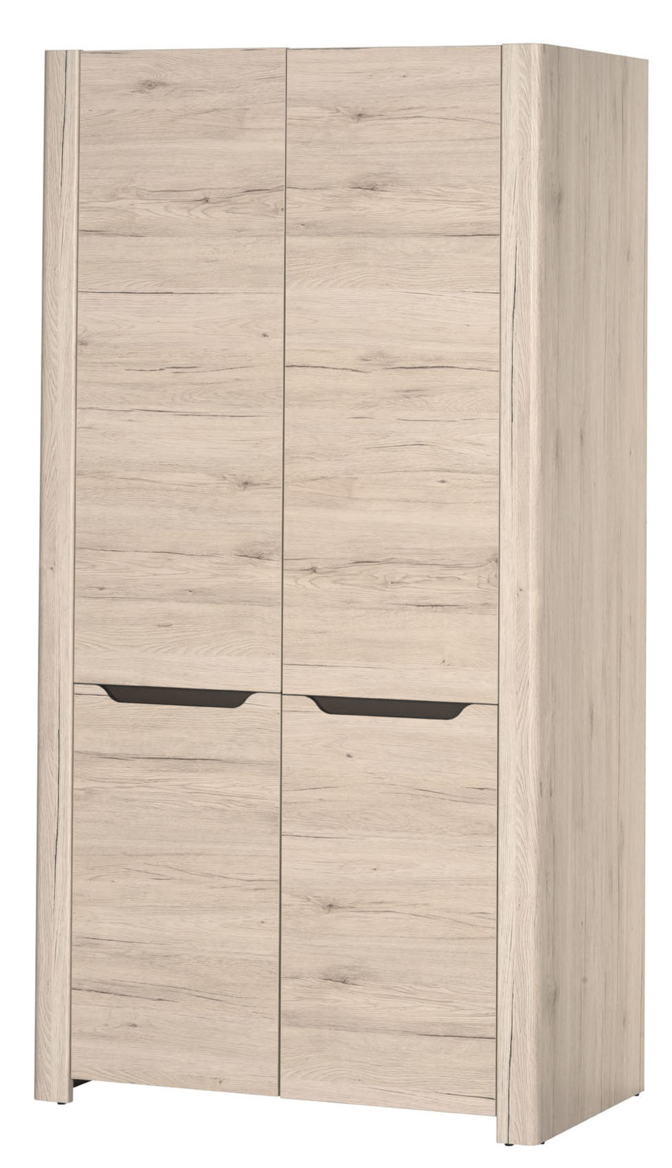 Šatní skříň Desjo 05 vás zaujme svým klasickým designem. Je vyrobena z MDF dřevotřísky s tenkou vrstvou masivního dřeva potaženého fólií, která navodí dojem přírodního dřeva.