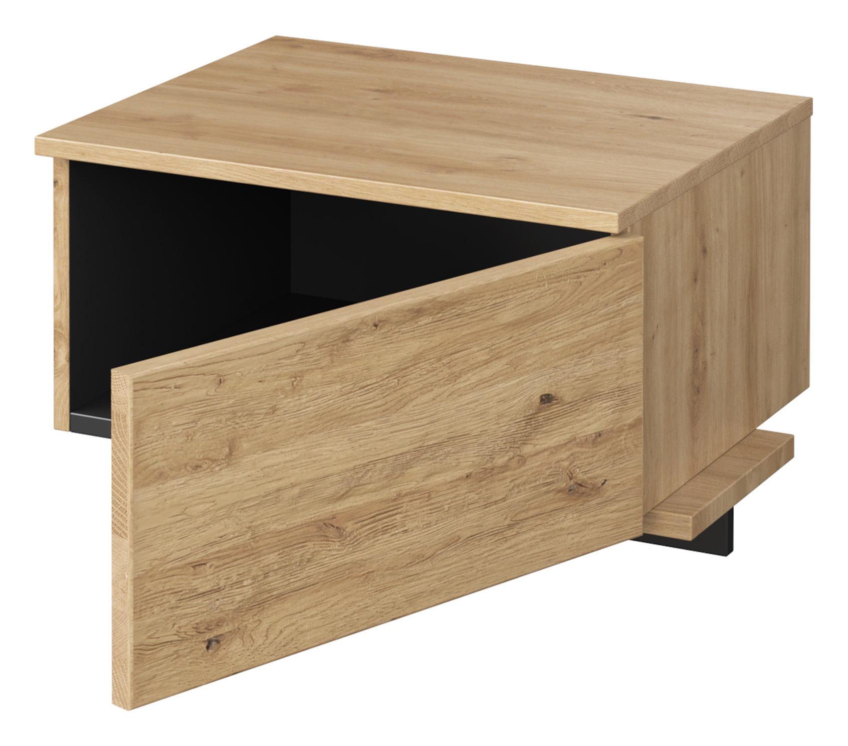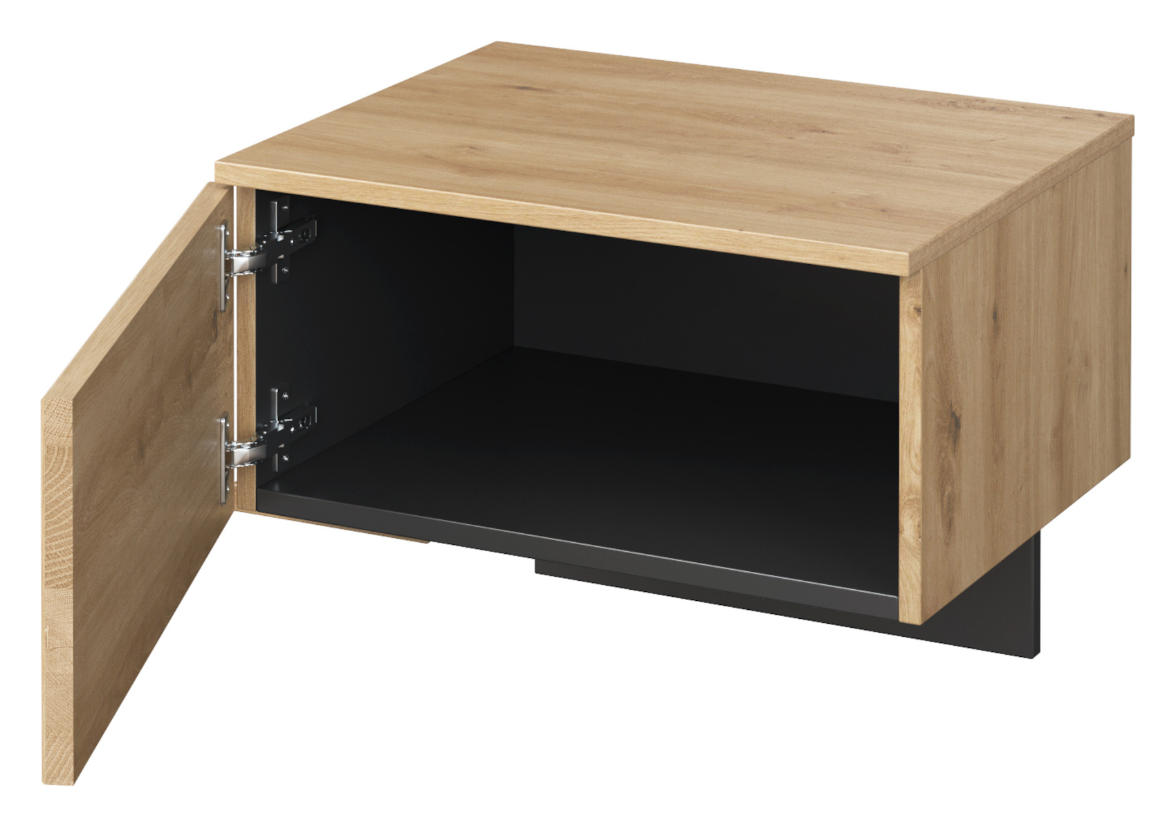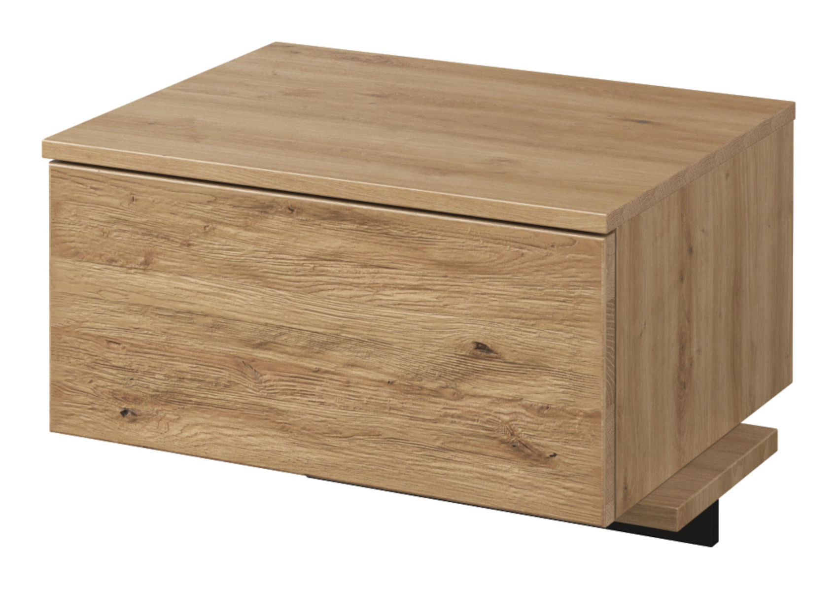 Moderní noční stolek Gintaro 1D vás zaujme svým jedinečným designem. Stolek je vyroben z masivního dubového dřeva a přírodní dubové dýhy. Kvalitní technologie lakování a moření navodí přírodní vzhled dřeva a zvýrazní tak jeho léta. Dvířka i zásuvky v celém systému mají tichý jednoduchý dotykový systém otevírání a zavírání - Push to open.
