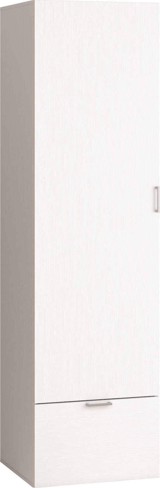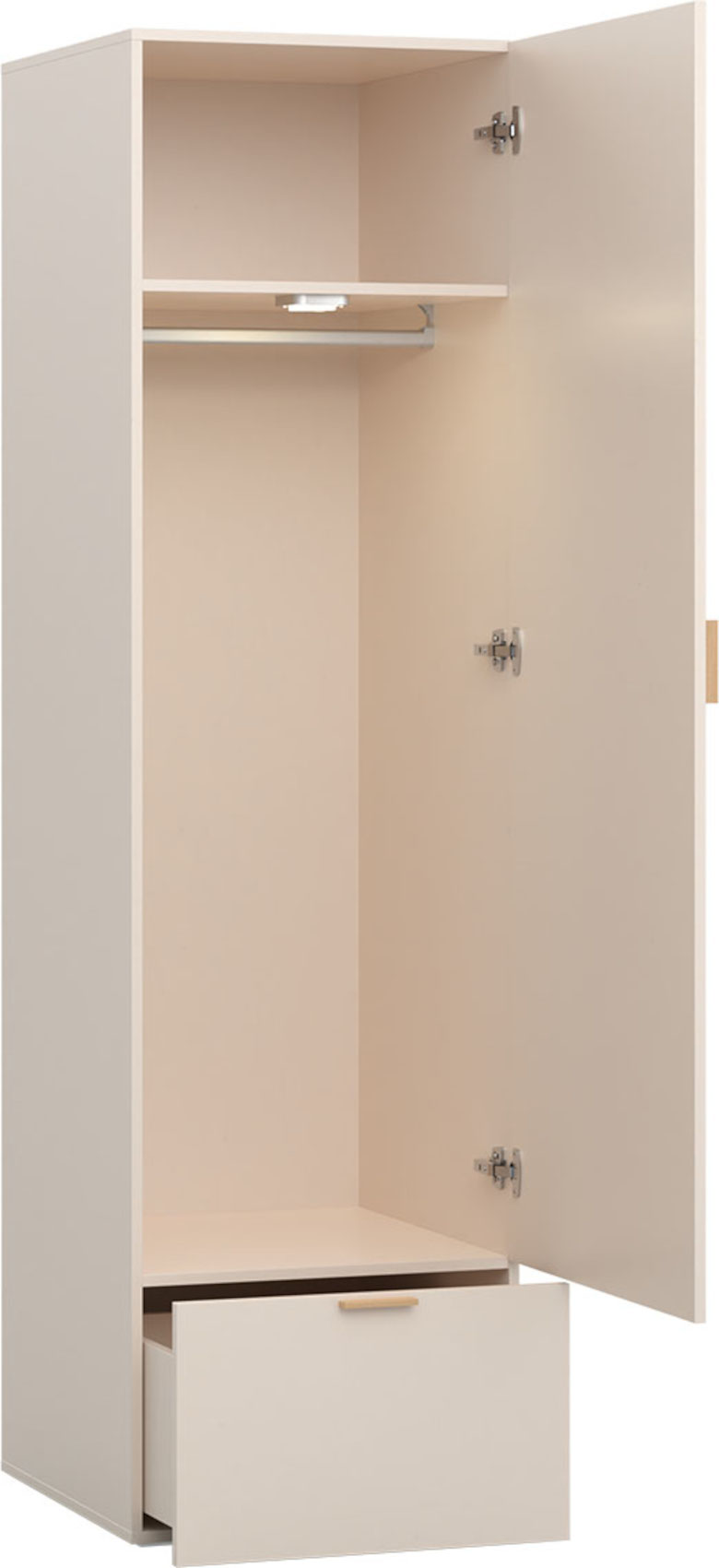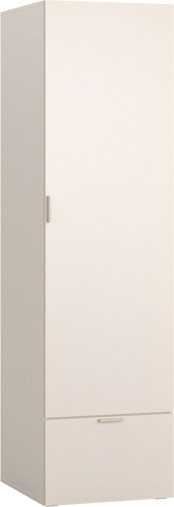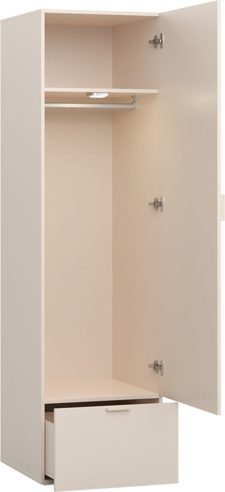 Jednodveřová šatní skříň 4You vás zaujme svým moderní designem. Je vyrobena z kvalitního lamina o síle 16 mm odolného vůči poškrábání a nečistotám. Dvířka mají zabudovaný systém tichého dovírání. V naší nabídce naleznete 2 odstíny - bílá a písková béžová.