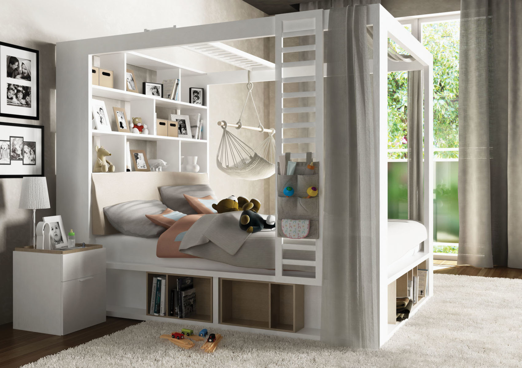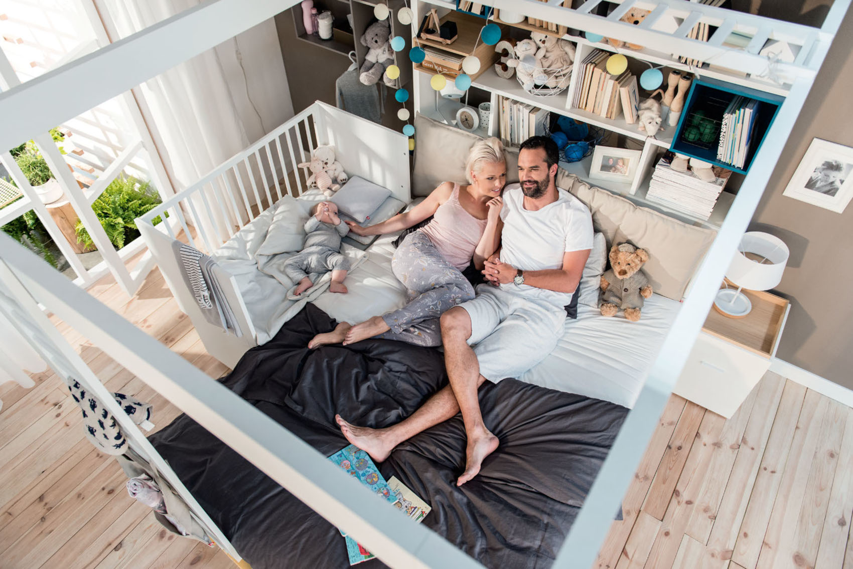 Plátno k posteli s baldachýnem a regálem 4You namontujte na baldachýn a vytvořte si útulný prostor ke sledování filmů.