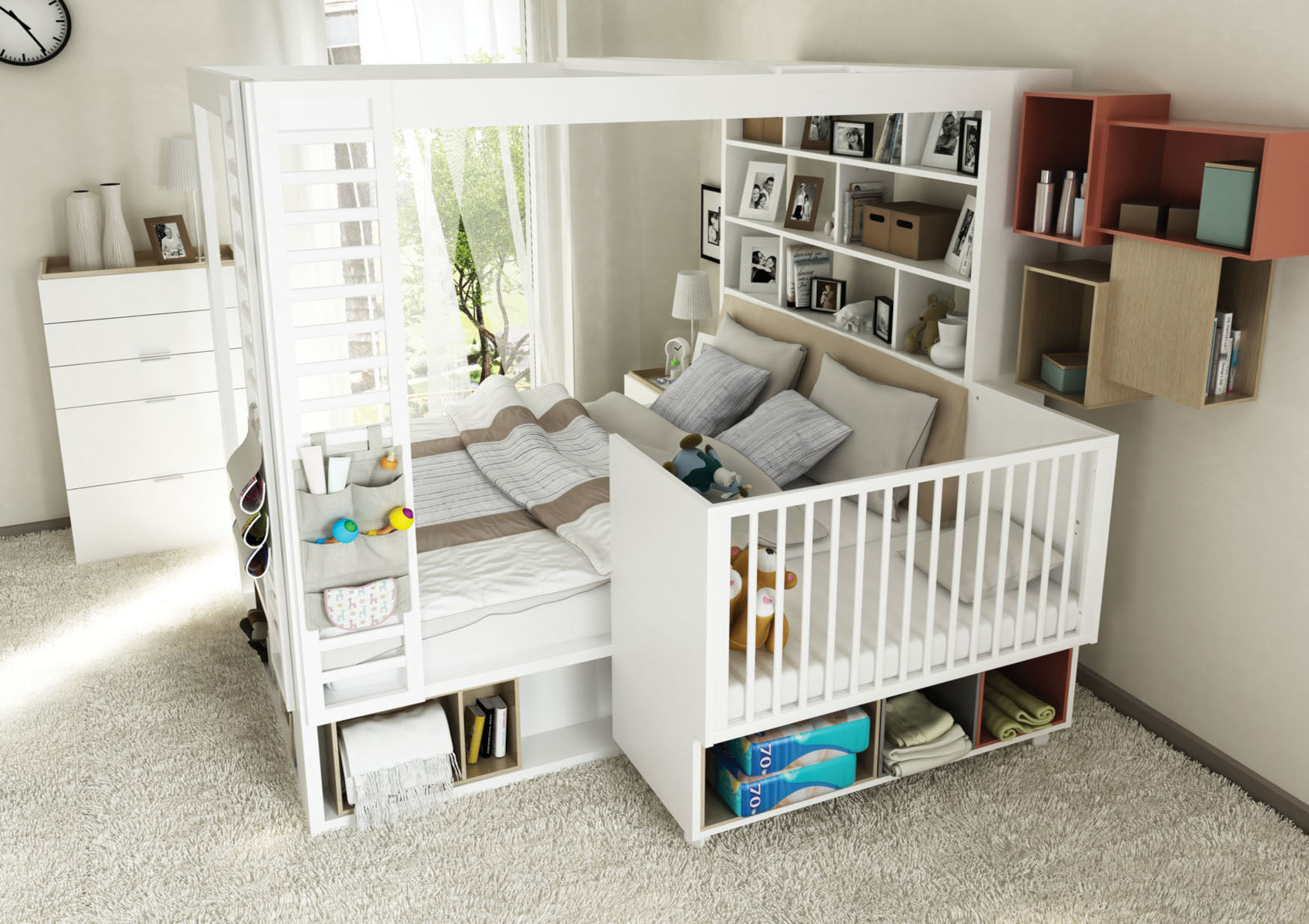 Součástí balení jsou 2 police, do kterých si můžete vystavit své oblíbené dekorace nebo knihy. Jedna z polic má úložný prostor z boční strany.