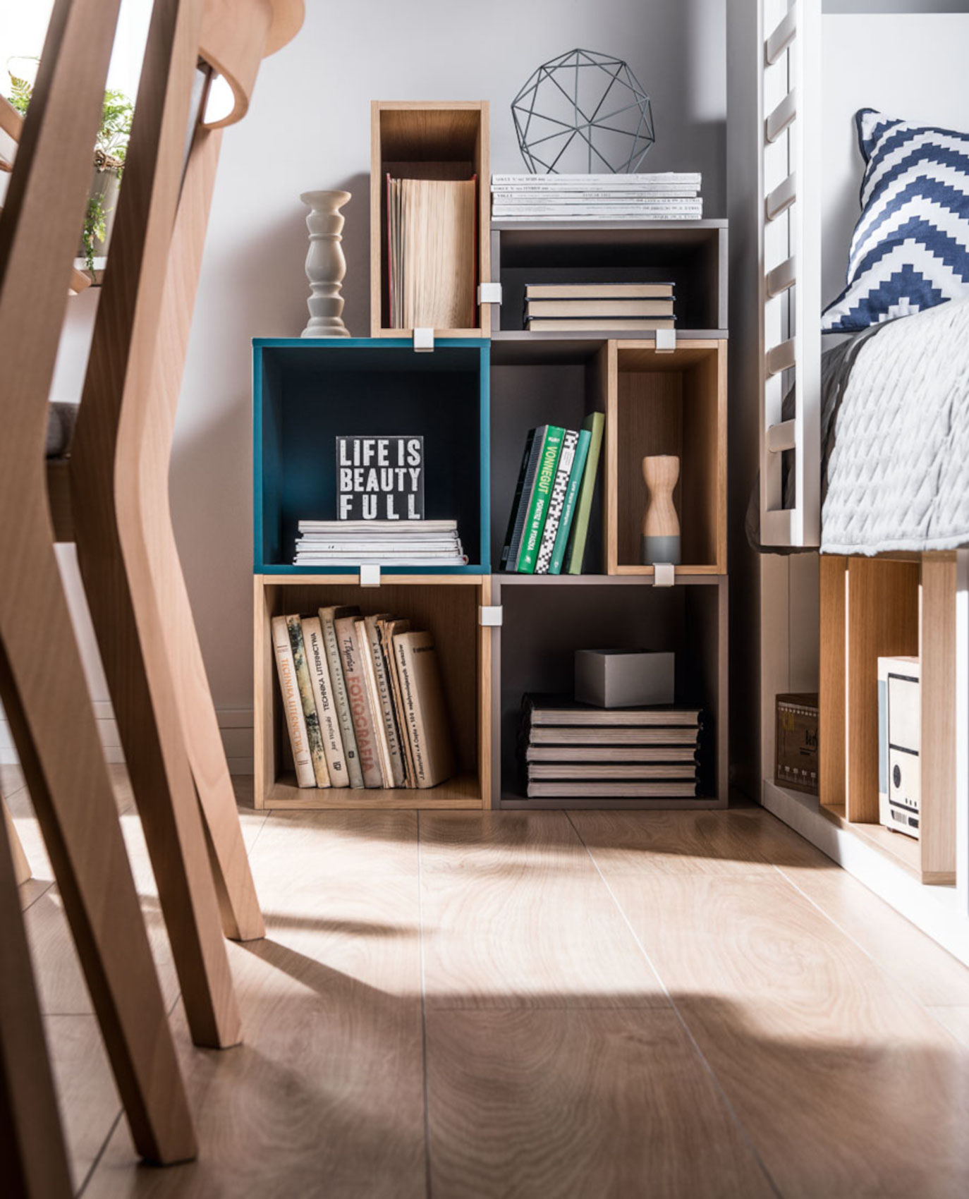 Polici můžete využít jako samostatně stojící skříňku k vystavení vašich oblíbených knih a dekorací nebo jako schránku do oboustranného regálu 4You a postele 4You.